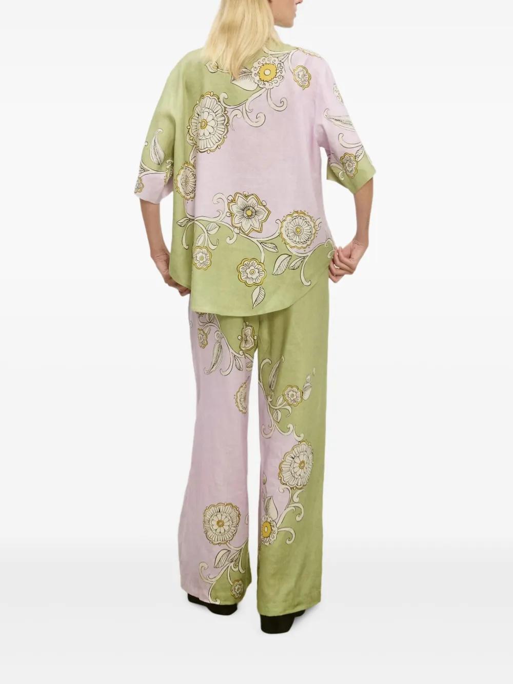 light green and lilac floral pattern drawstring fastening linen two-tone design side pockets