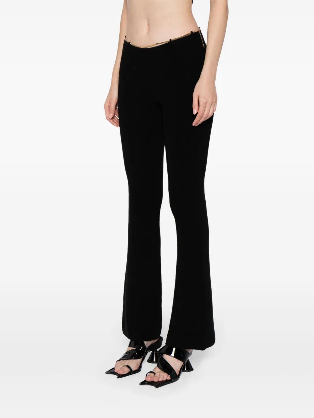 black stretch-wool ribbed knit silver-tone hardware chain-link detailing mid-rise flared elasticated waistband slip-on style