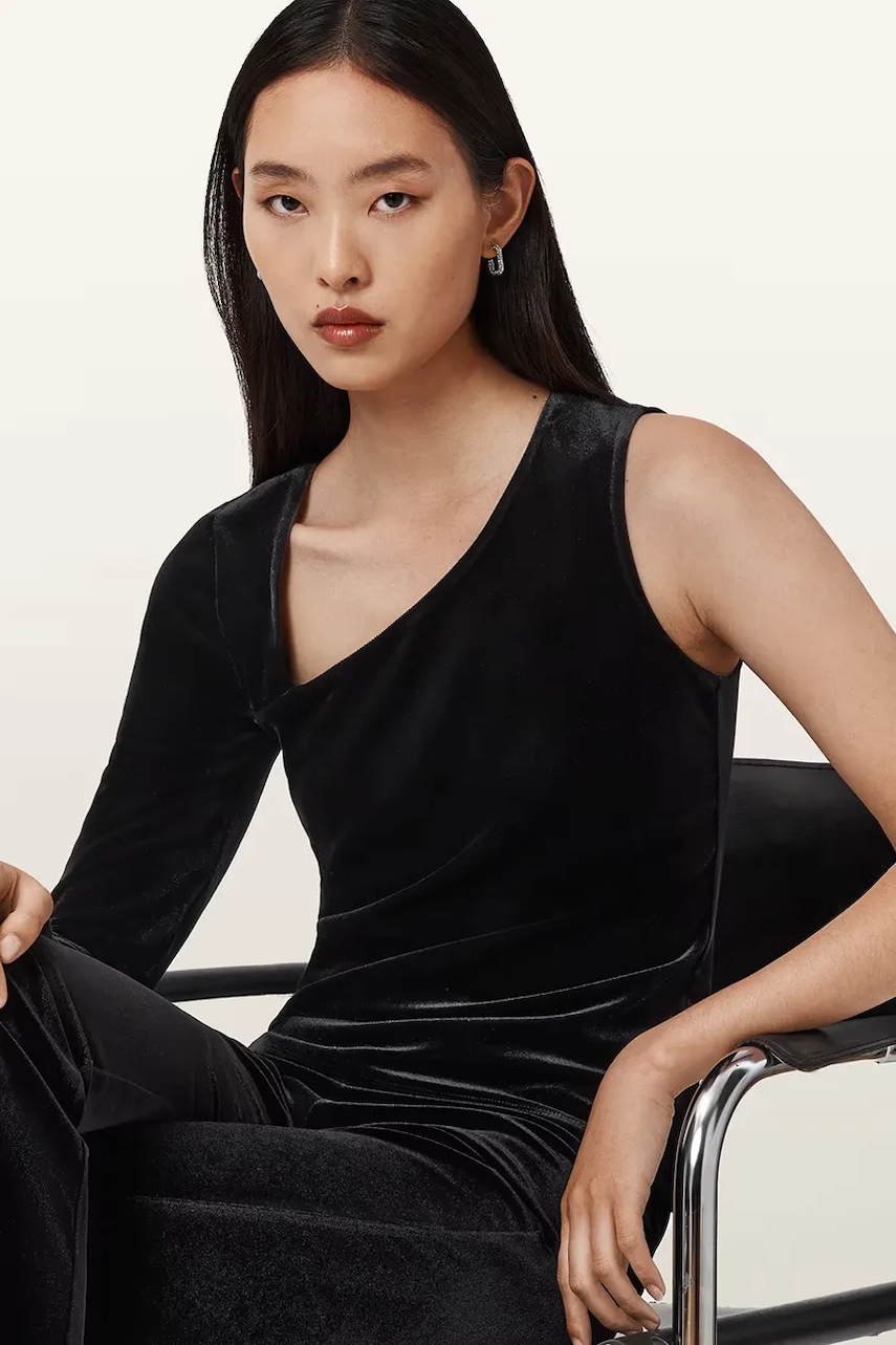 AllSaints spodnie welurowe damskie kolor czarny high waist W060TD