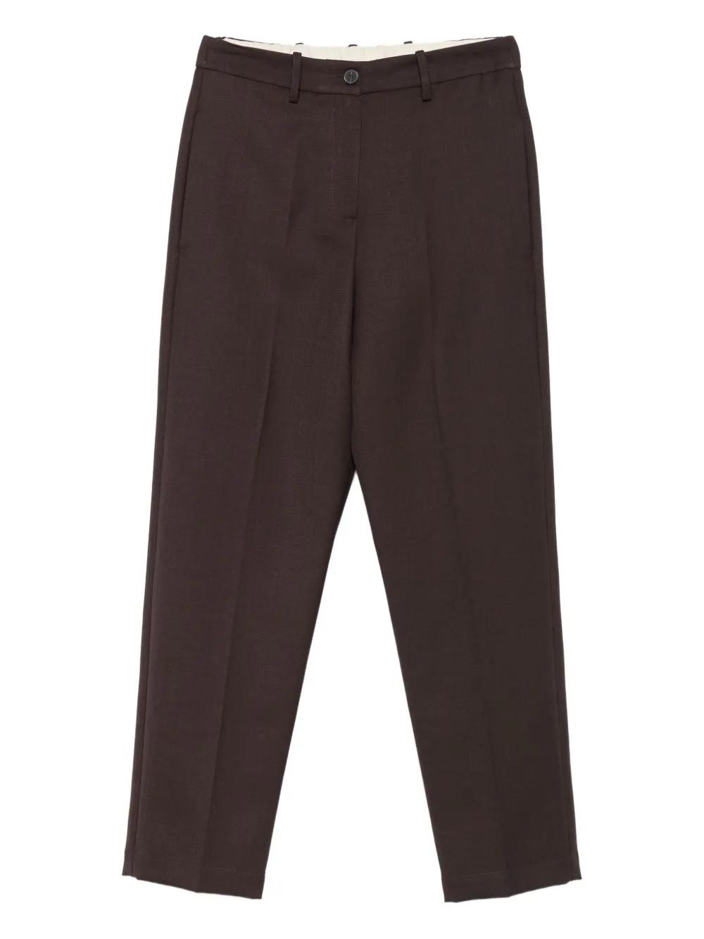 almond beige organic cotton twill weave high-waisted belt loops front button and zip fastening two diagonal pockets to the sides side button-fastening pocket two rear patch pockets straight leg