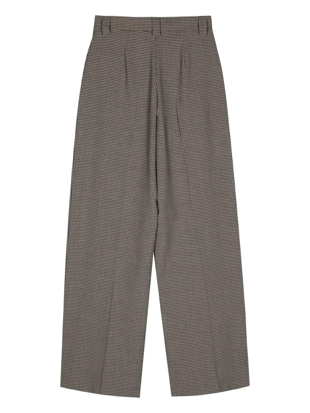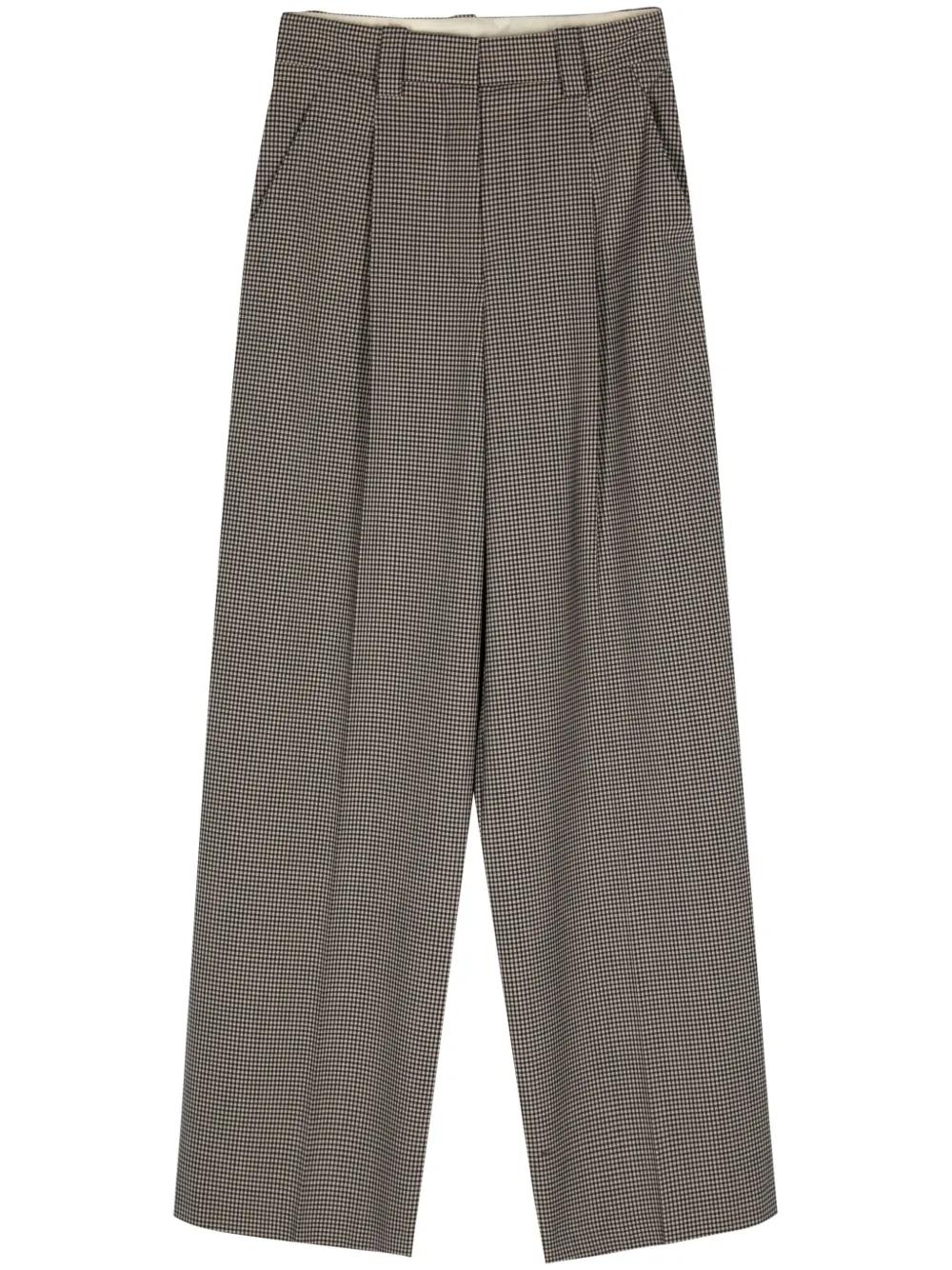 brown wool-cotton blend houndstooth pattern belt loops concealed front fastening two diagonal pockets to the sides wide leg