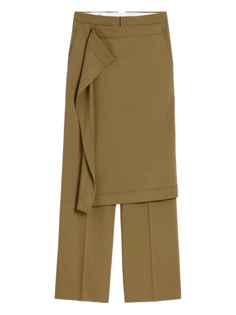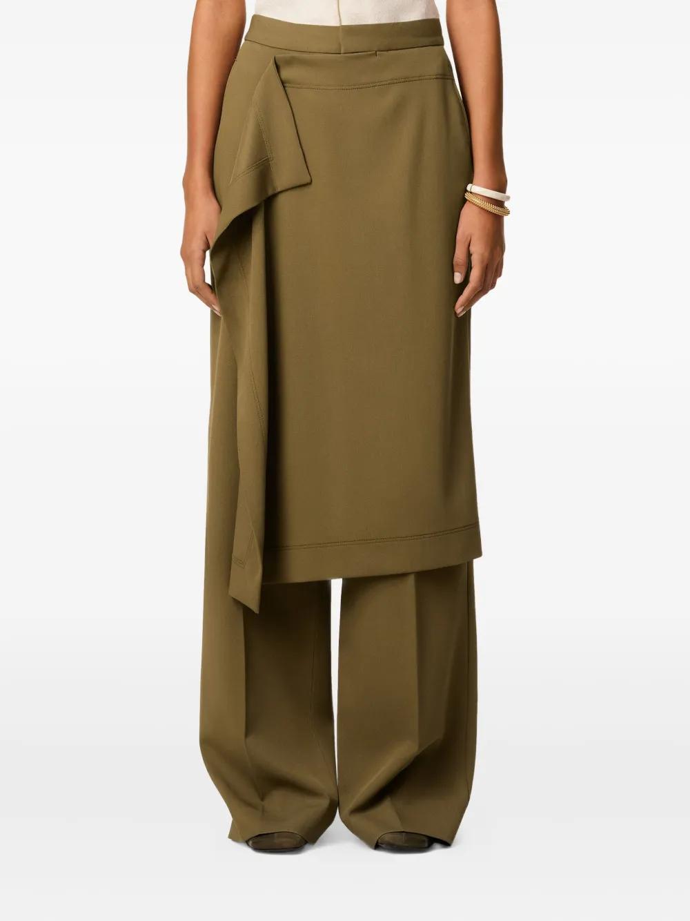 olive green draped panel concealed fastening two rear button-fastening jetted pockets