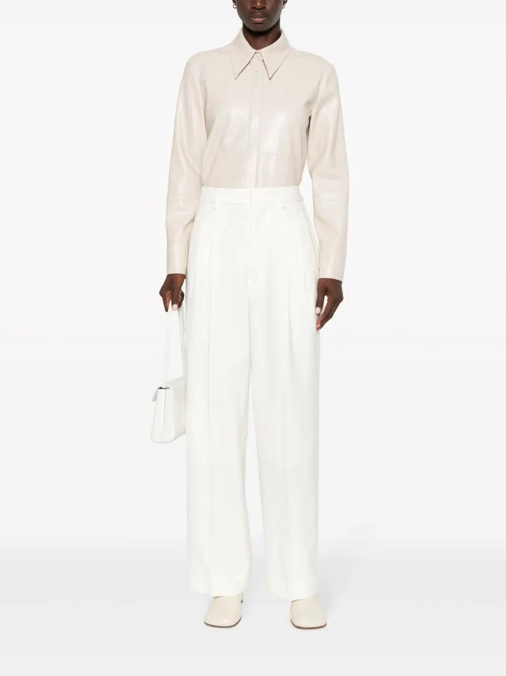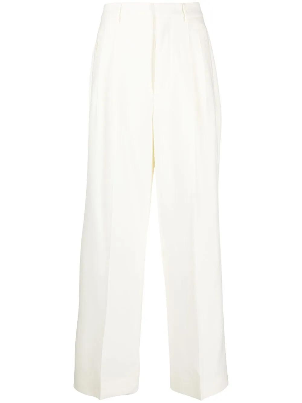 ivory white virgin wool box-pleat detail high waist flared concealed front fastening belt loops two rear button-fastening pockets