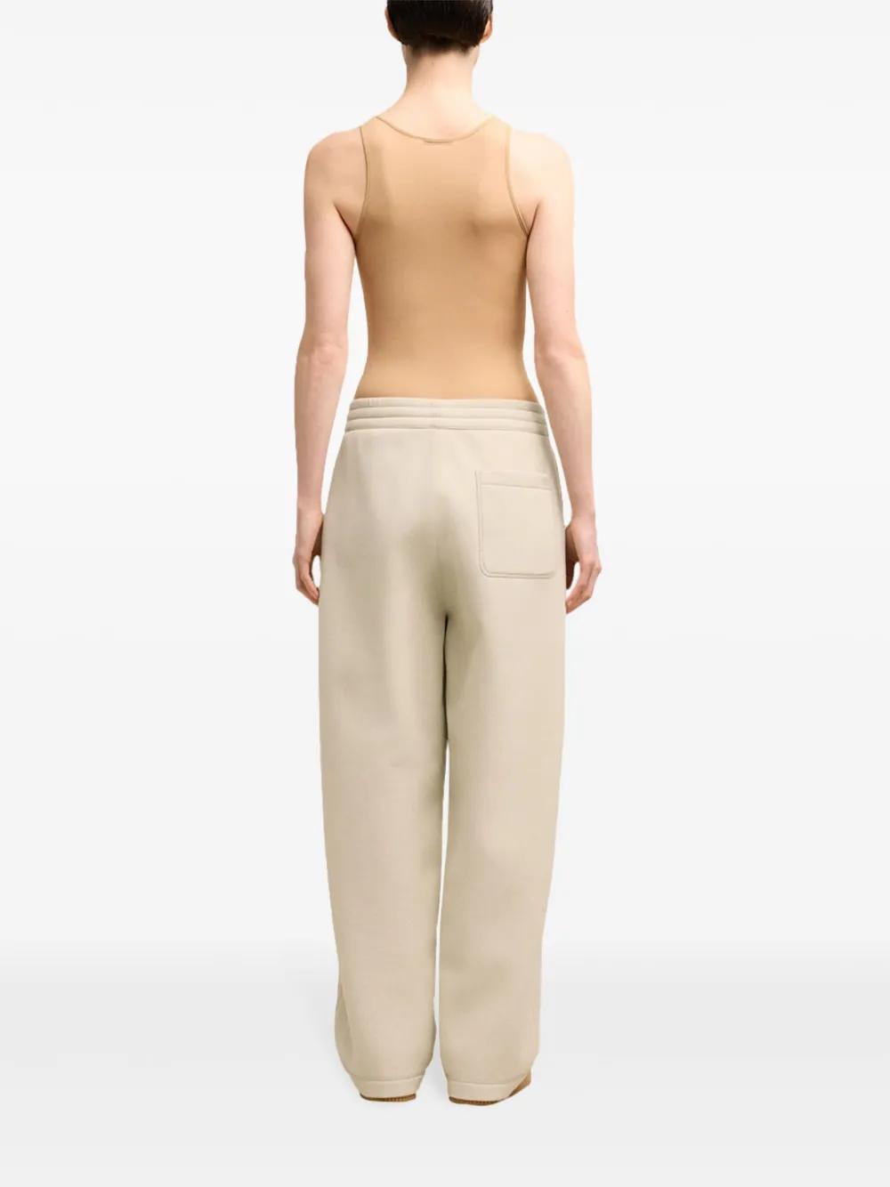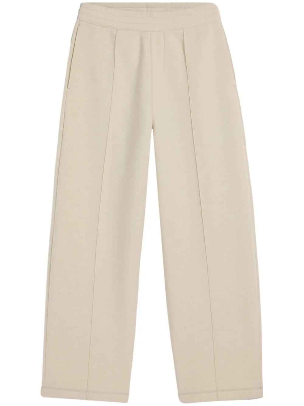 sand beige fully pleated high-waisted two side flap pockets rear patch pocket straight leg elasticated waistband