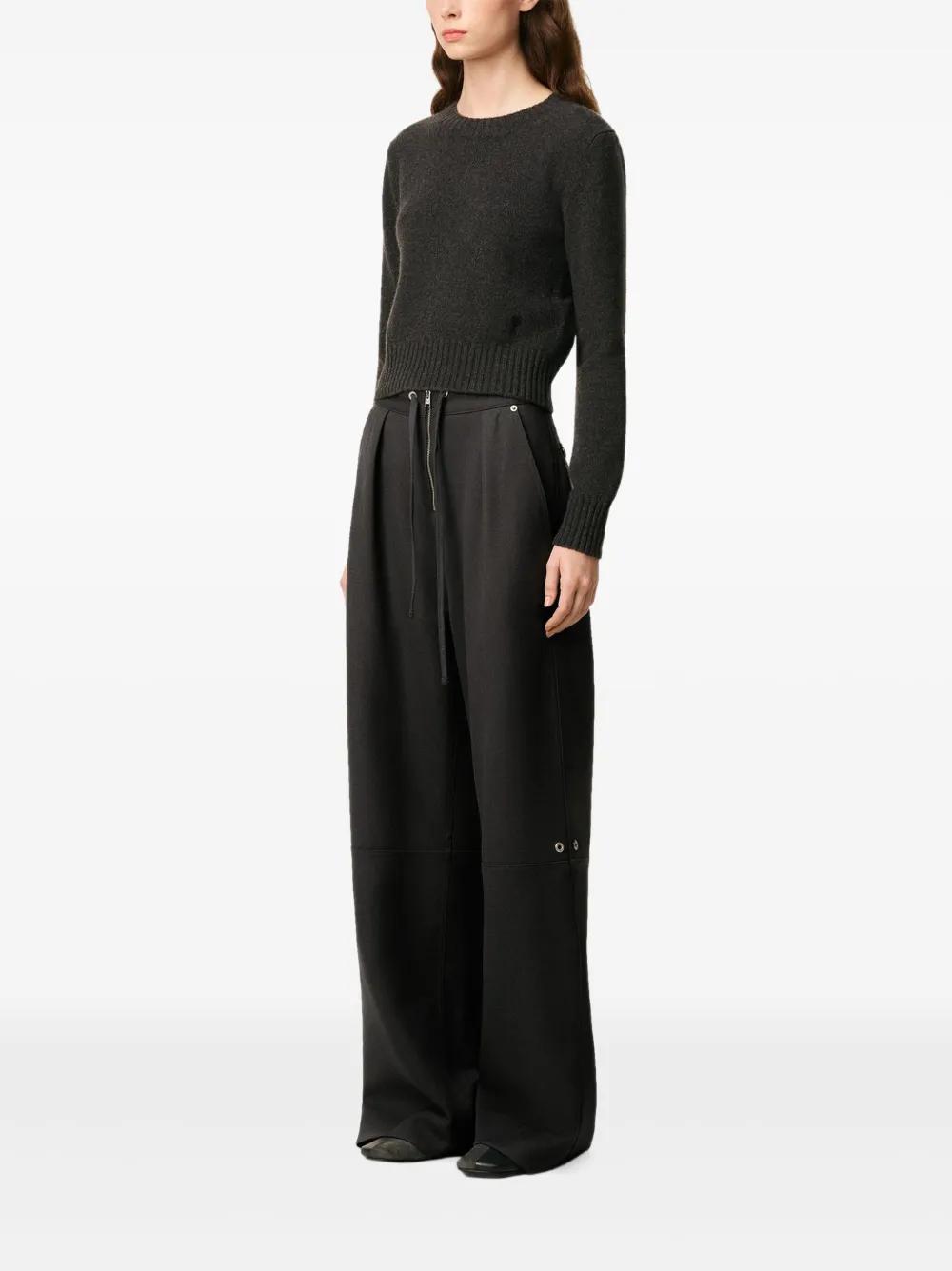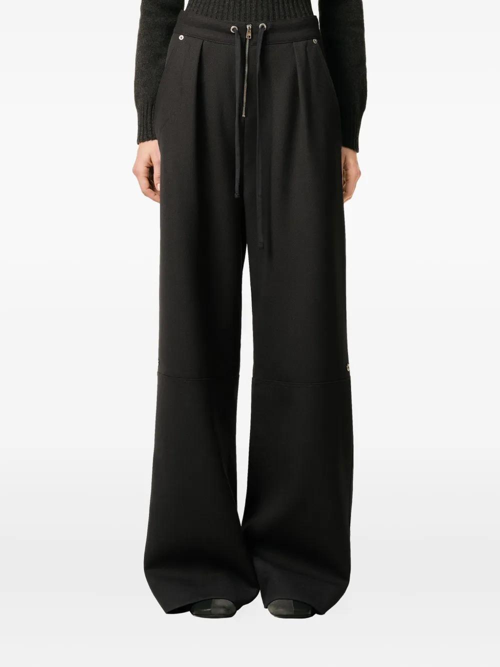 charcoal grey front zip fastening drawstring waist side slit pockets rear patch pockets