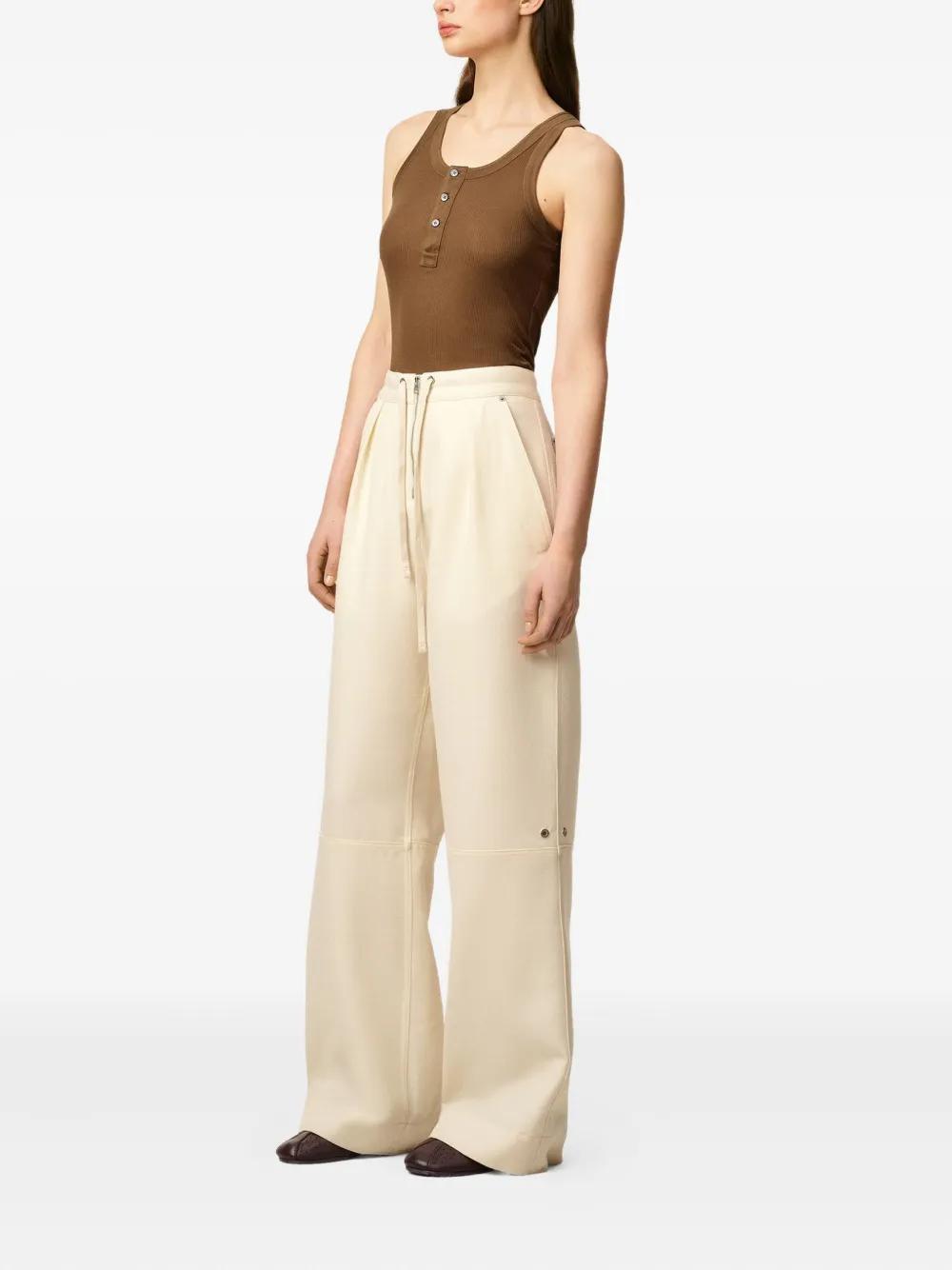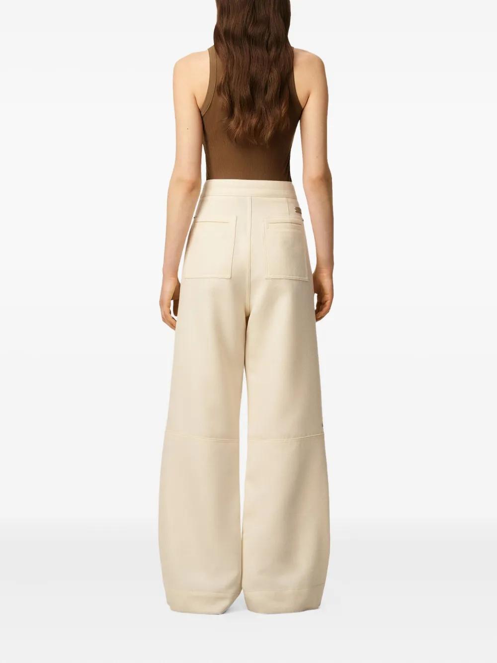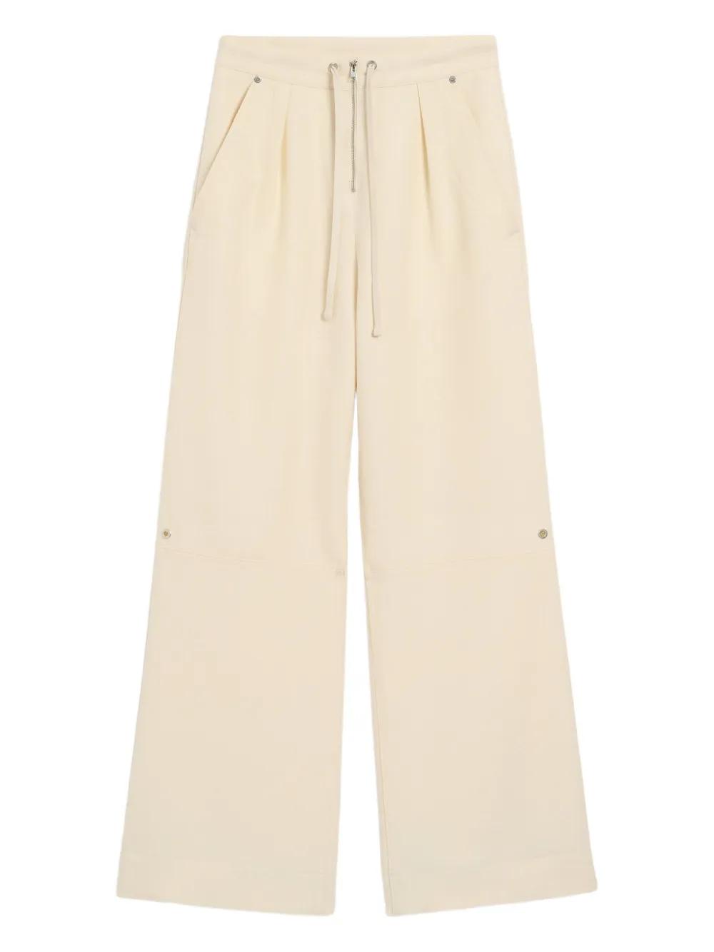 ivory front zip fastening drawstring waist two side slash pockets two rear patch pockets stud details