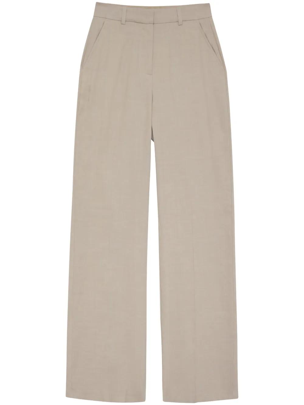 beige high-rise belt loops zip fastening two side slit pockets draped detailing two rear welt pockets long length