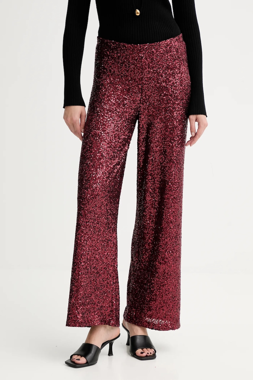 Answear.LAB spodnie damskie kolor bordowy szerokie high waist