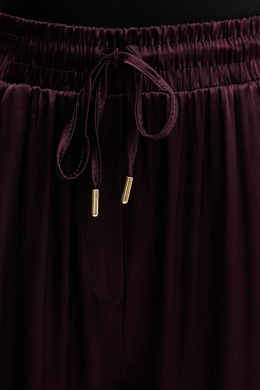 - Luźna nogawka. - W pasie elastyczna listwa z troczkami. - Dwie wsuwane kieszenie boczne. - Szerokość w pasie: 32 cm. - Szerokość w biodrach: 53 cm. - Wysokość stanu: 32 cm. - Szerokość nogawki na dole: 30 cm. - Szerokość nogawki: 32 cm. - Długość wewnętrzna nogawki: 80 cm. - Wymiary podane dla rozmiaru: S.