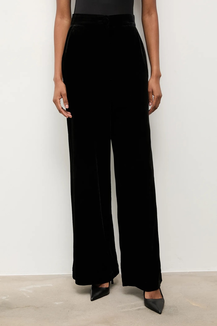 Answear.LAB spodnie welurowe damskie kolor czarny szerokie high waist