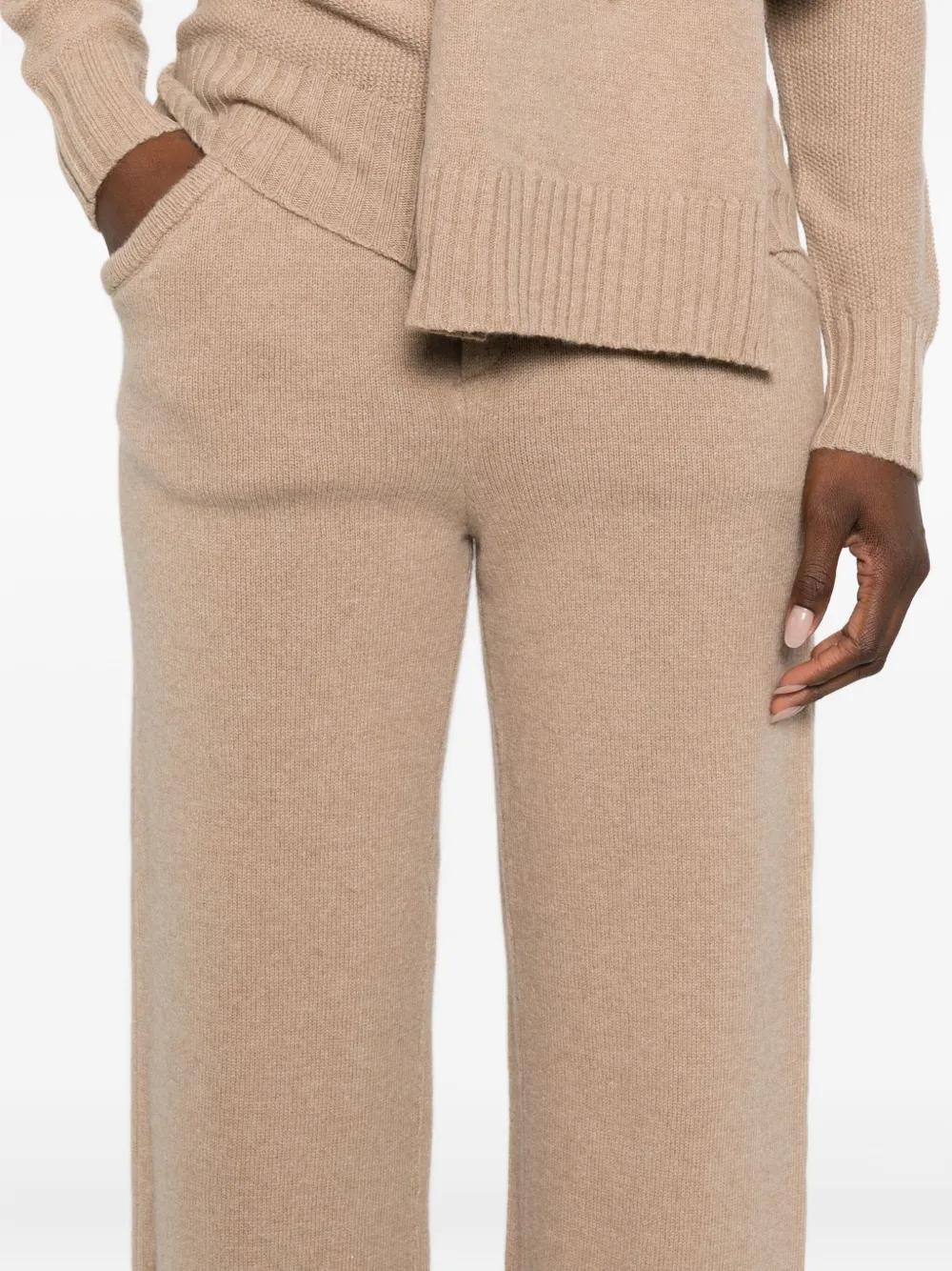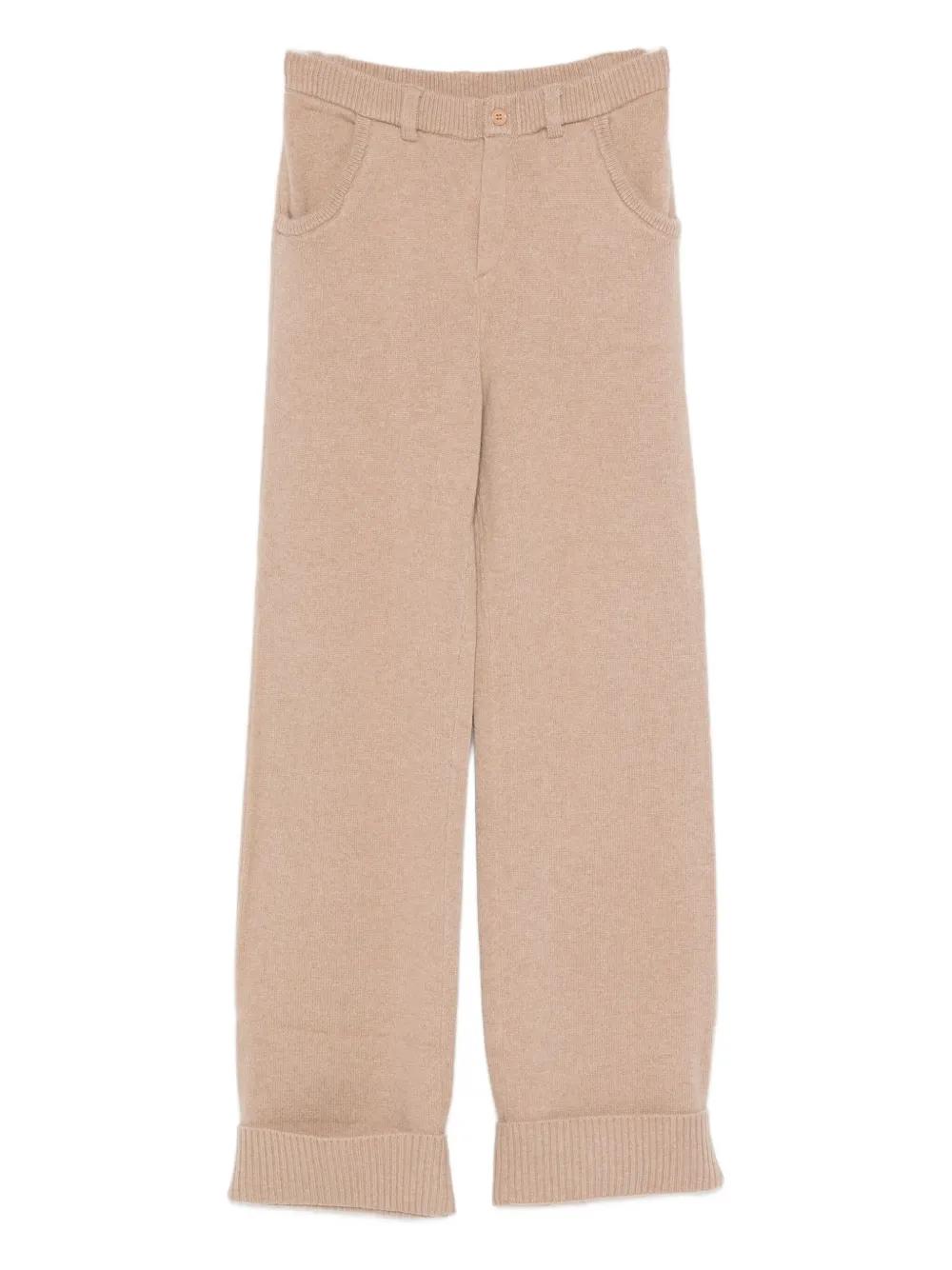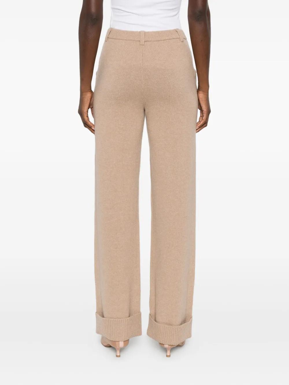 light brown front button fastening belt loops side pockets cuffed hem straight leg