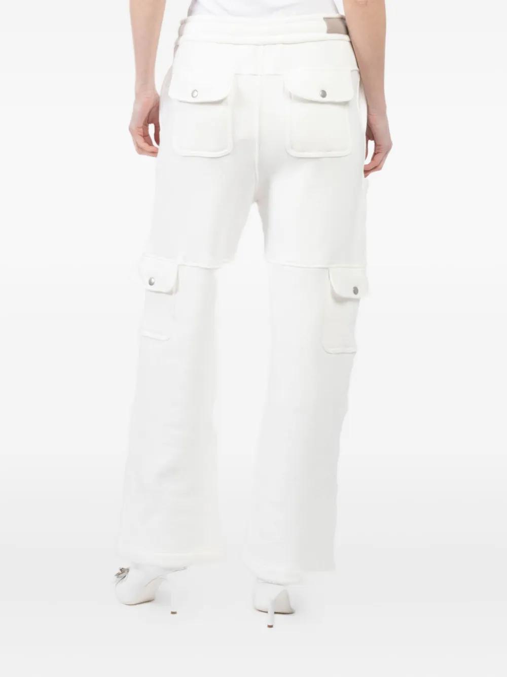white elasticated drawstring waistband multiple cargo pockets two side slit pockets