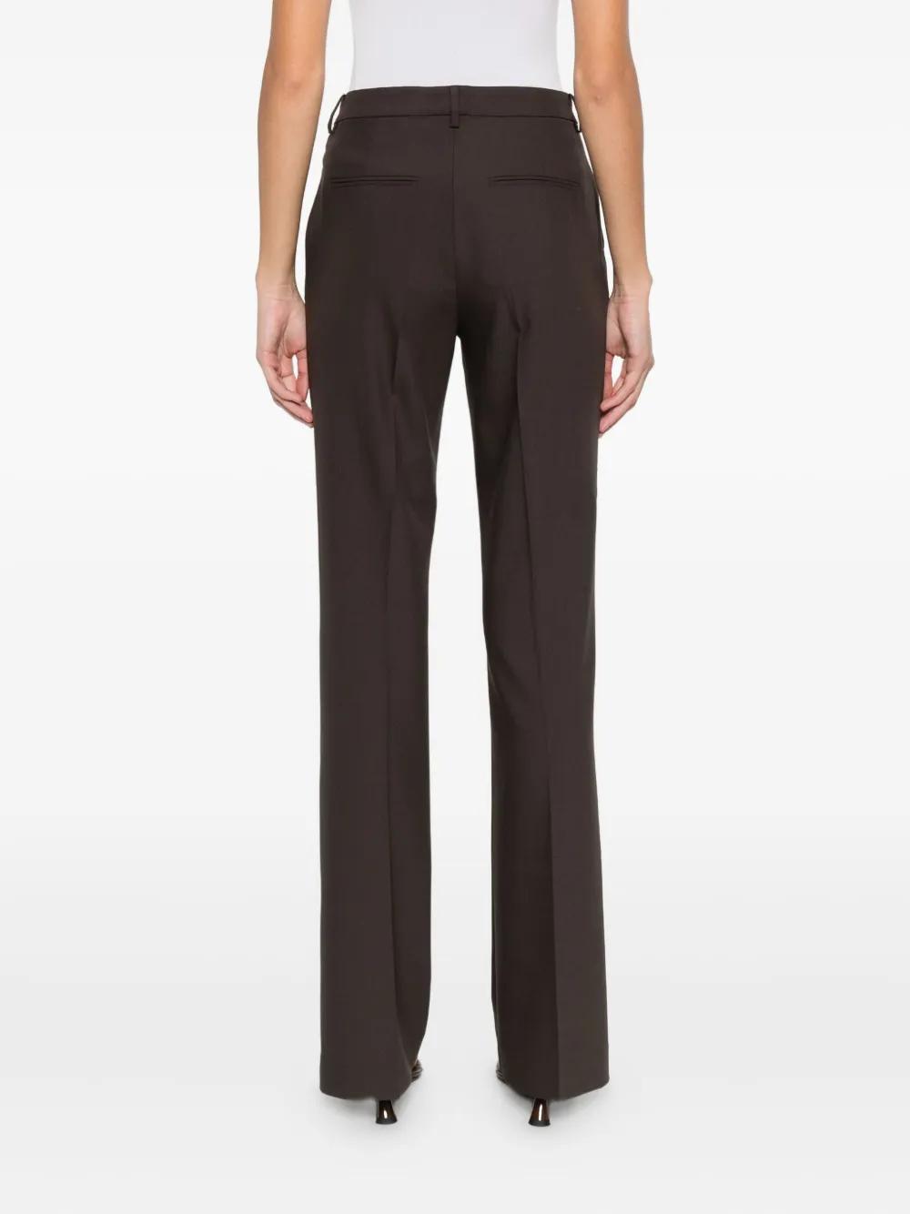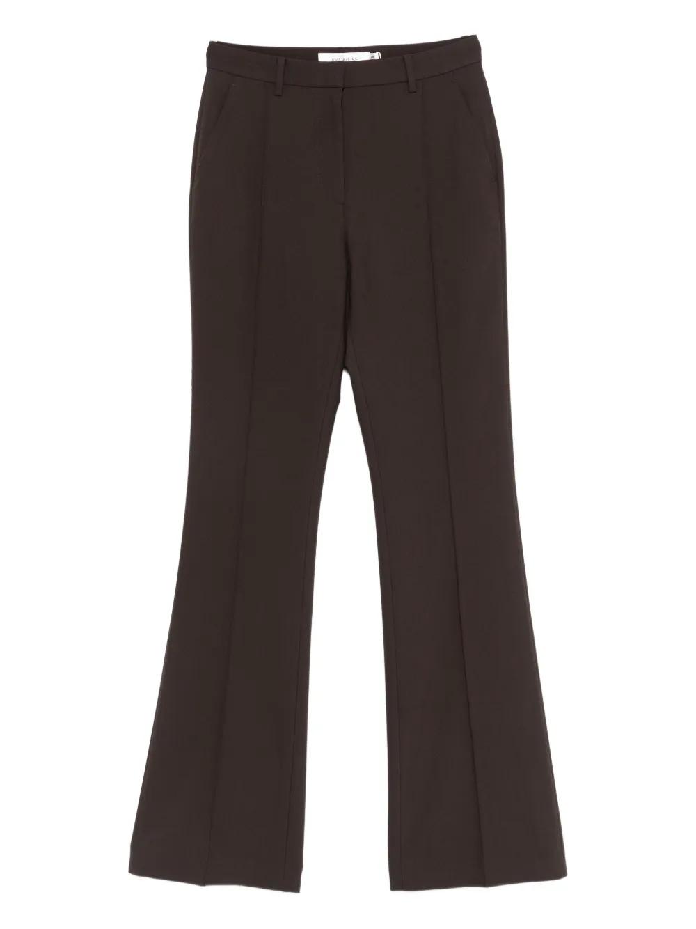 brown seam detail flared hem belt loops side pockets concealed fastening