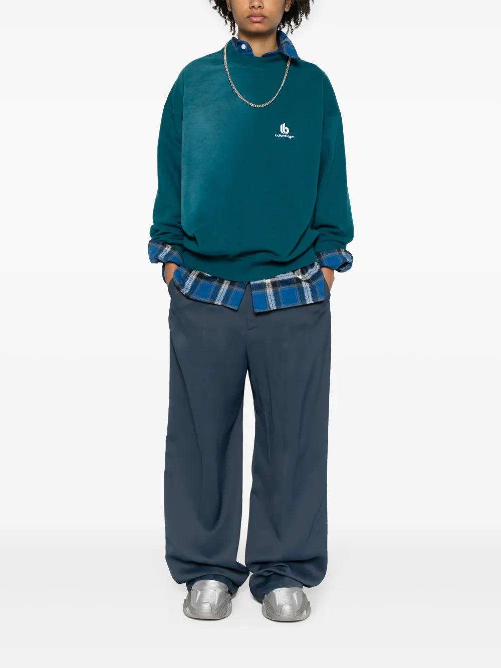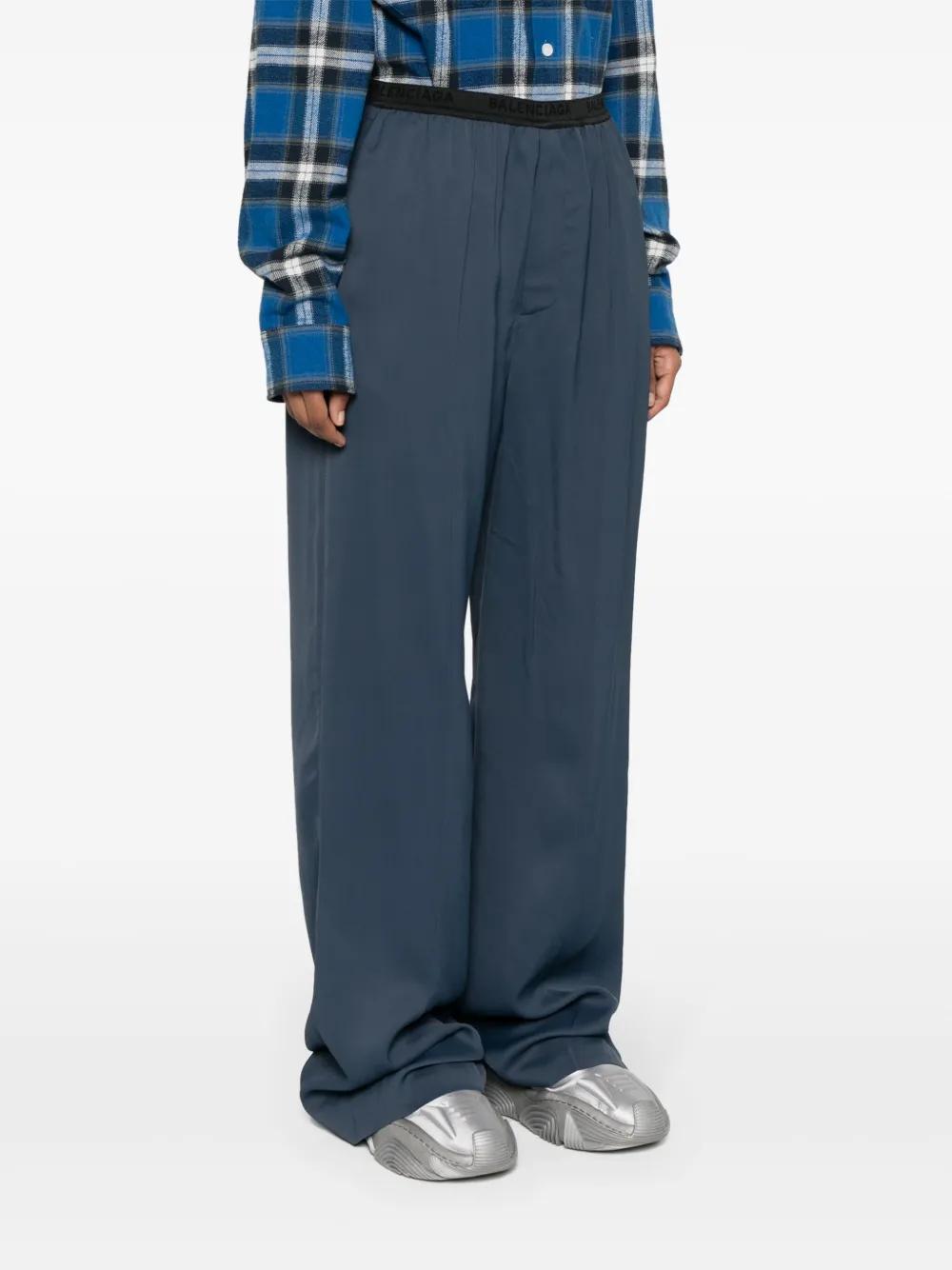 Balenciaga logo-waistband straight-leg pants - Blue