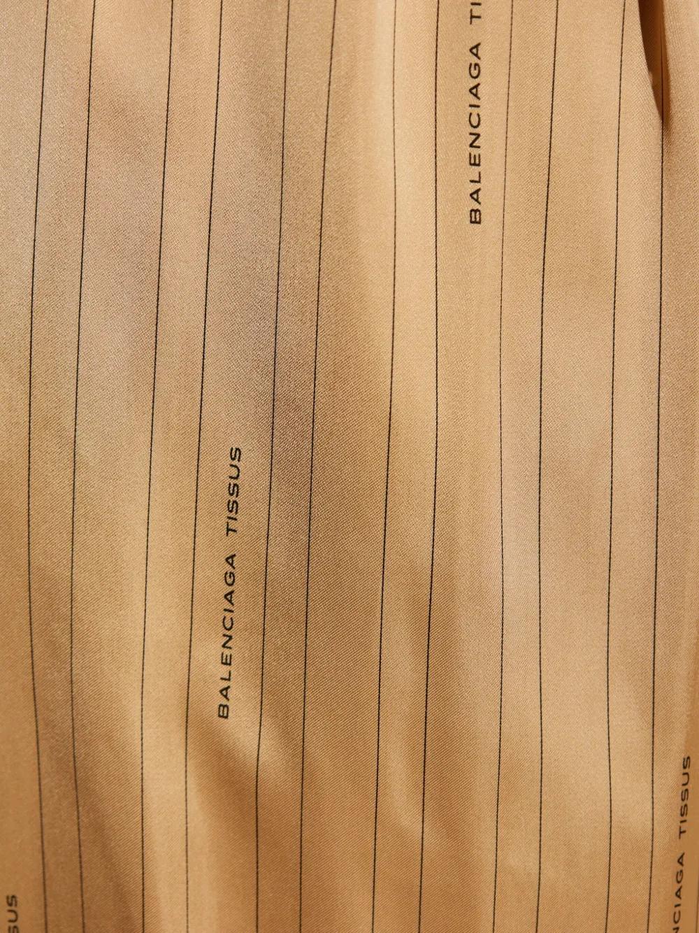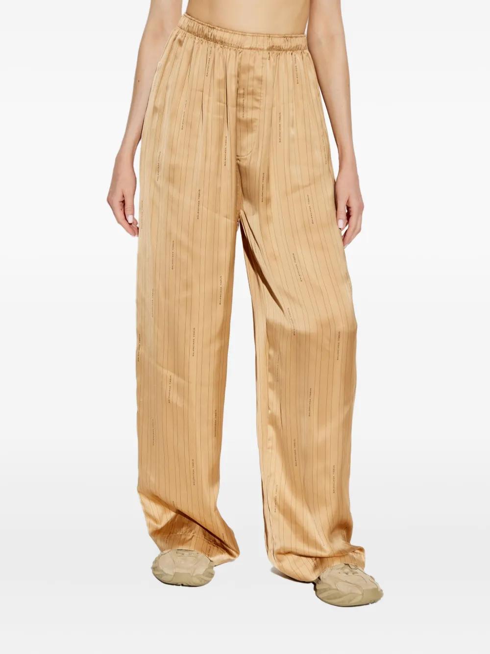 beige vertical stripe pattern elasticated waistband all-over logo print side pockets