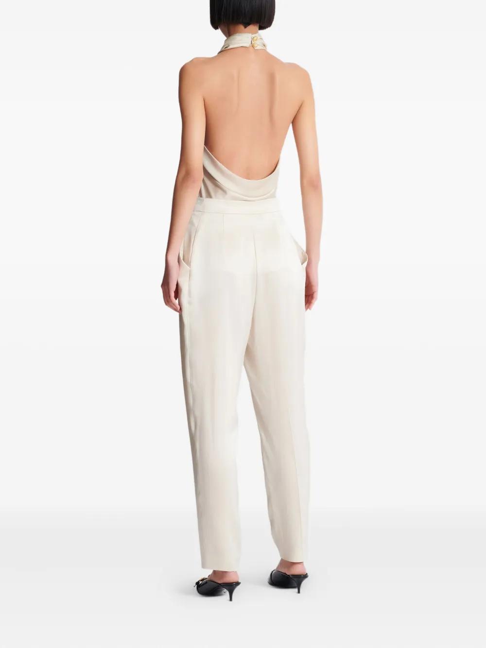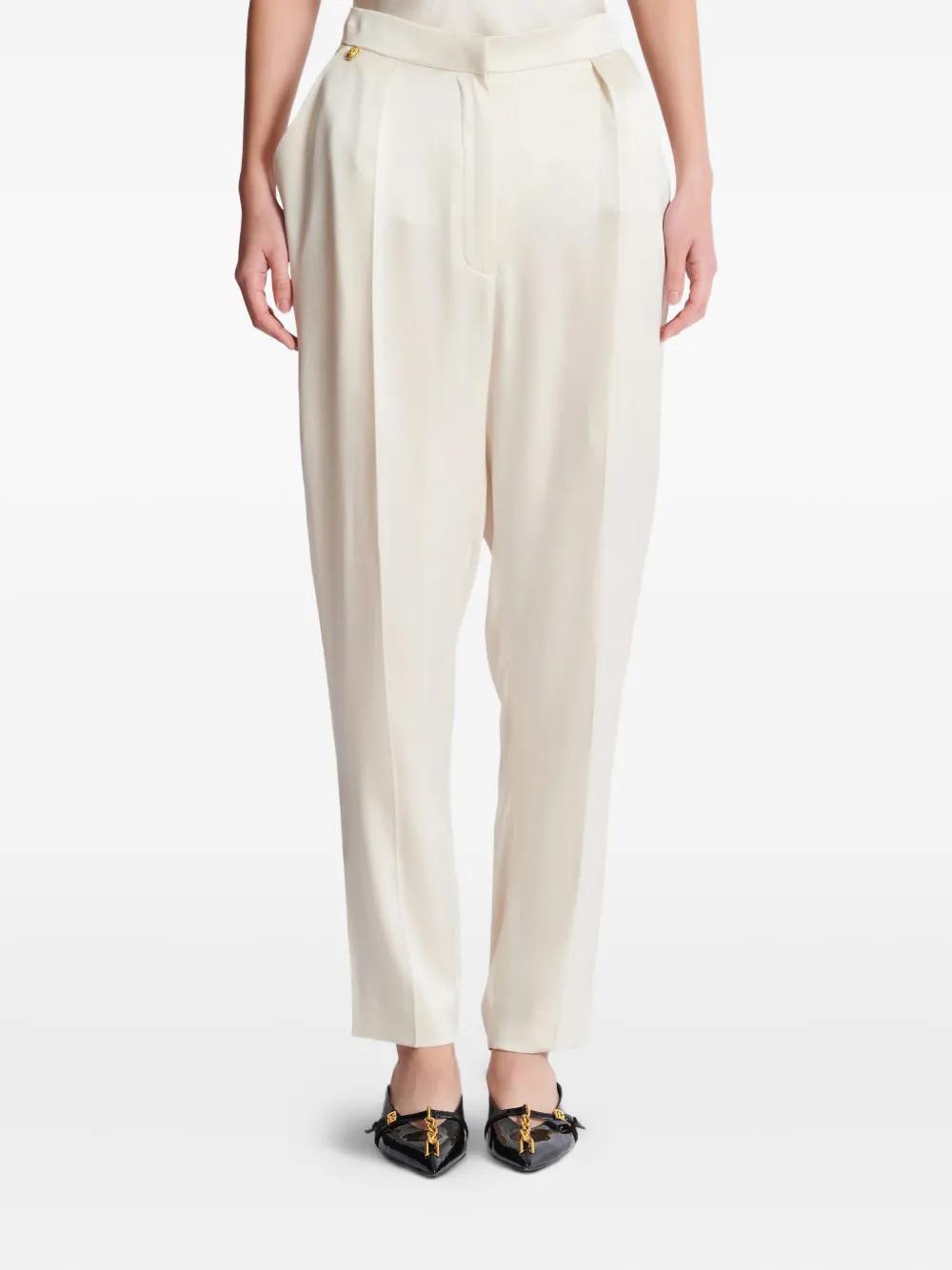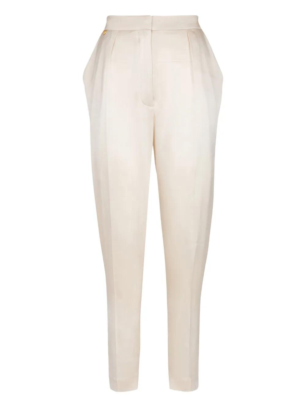 ecru concealed front fastening two side inset pockets pleat detailing tapered leg