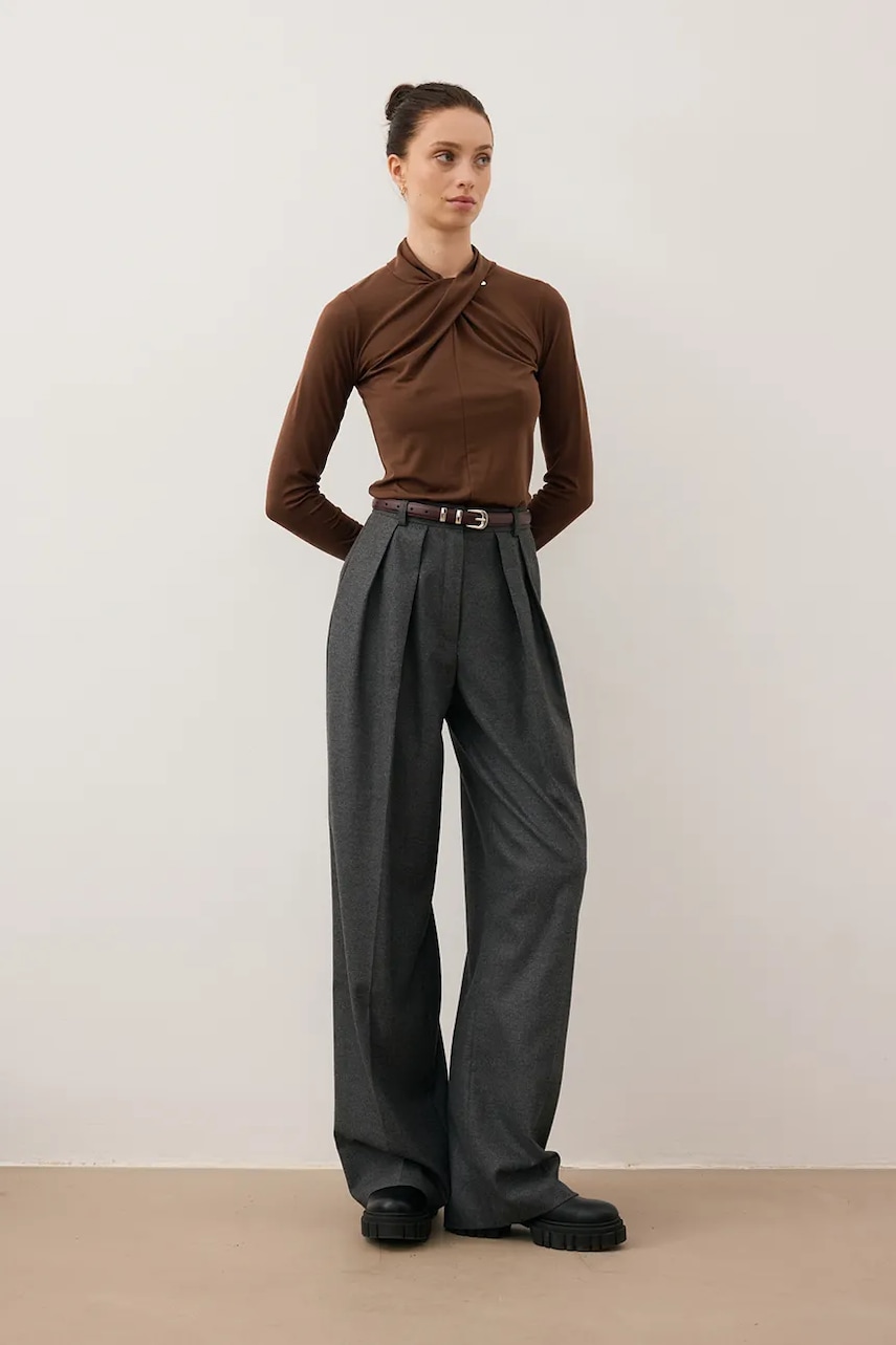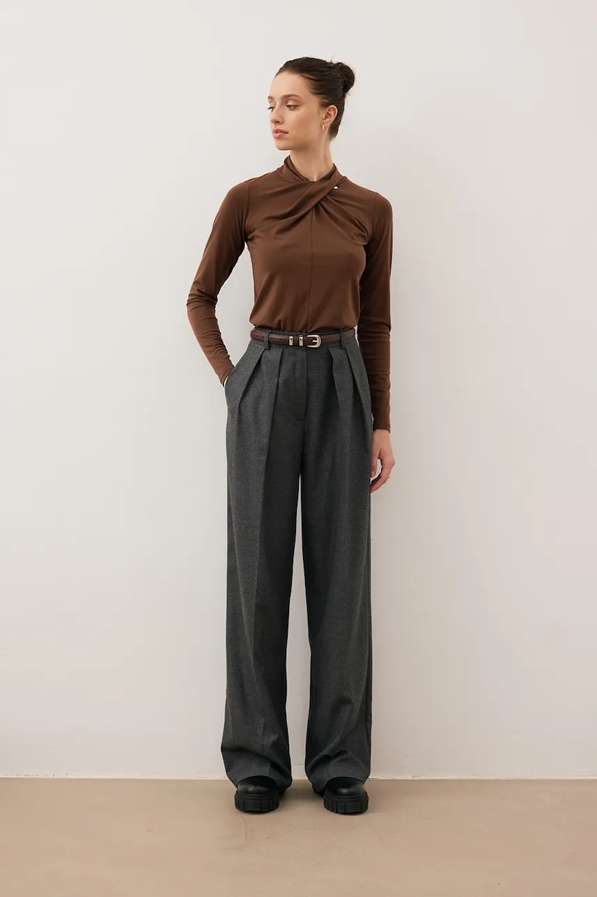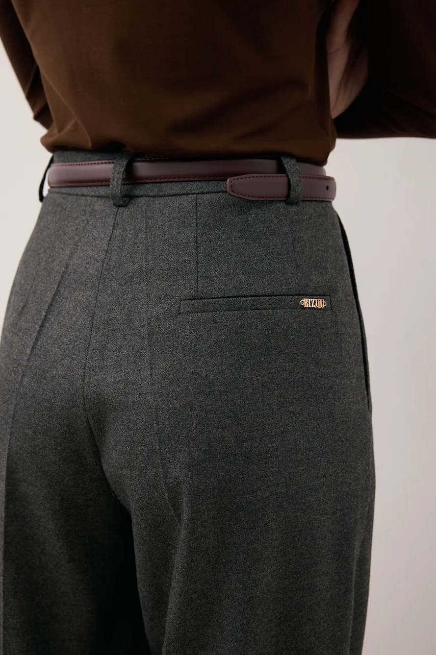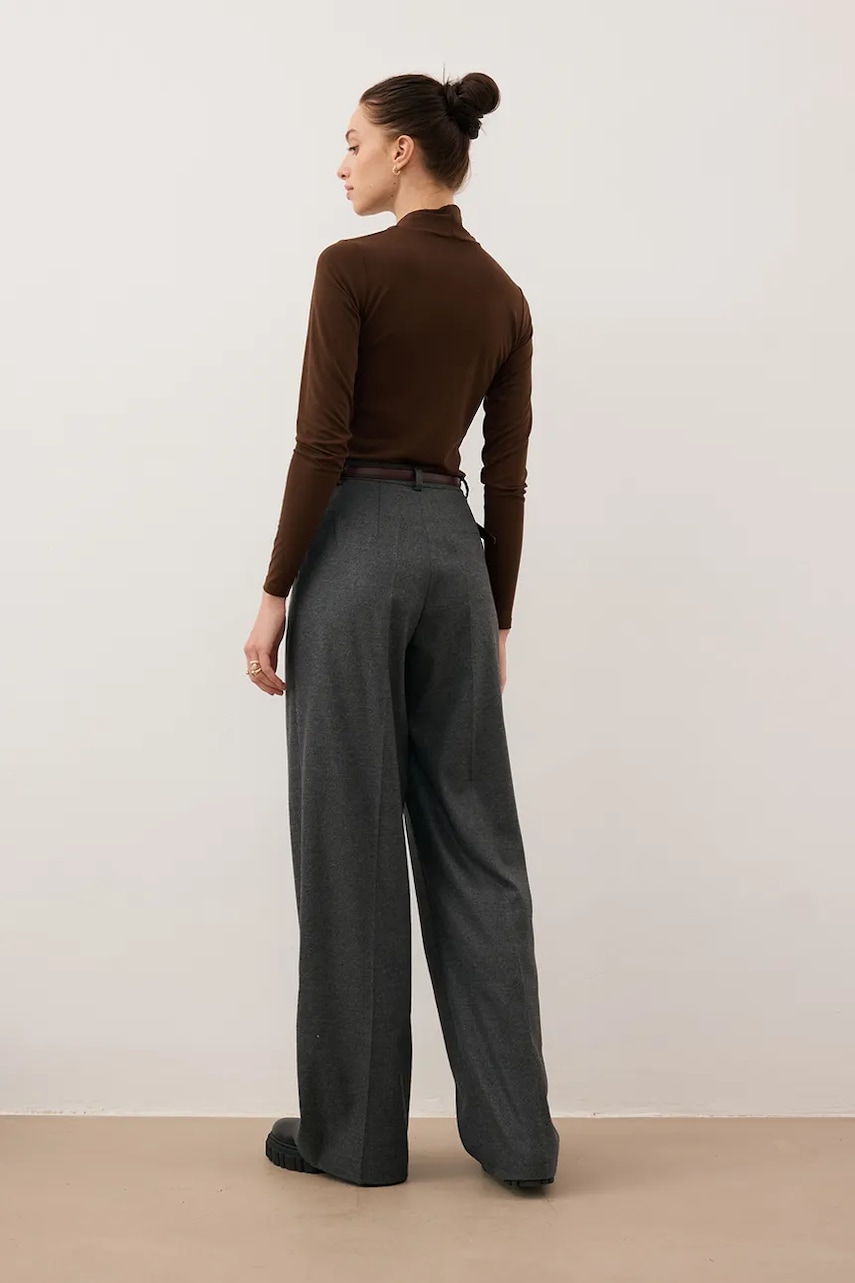 Bizuu spodnie BANOS GRAŻYNA damskie kolor szary szerokie high waist BANOS GRAŻYNA GRAFITOWY