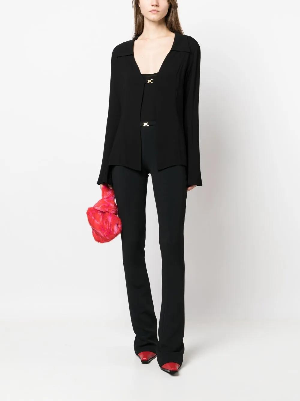 black logo-buckle detail flared design slim cut bootcut high-waisted gold-tone hardware