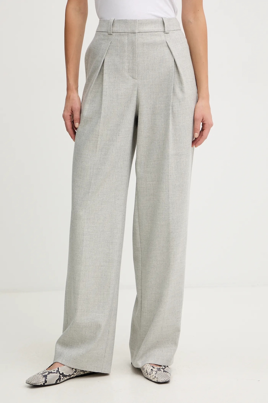 BOSS Orange spodnie z dodatkiem wełny damskie kolor szary proste high waist 50547679