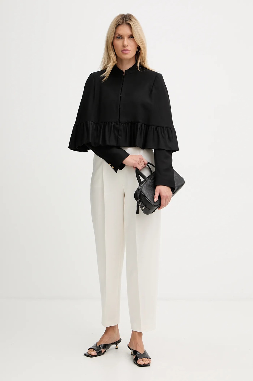BOSS spodnie damskie kolor beżowy proste high waist 50548218