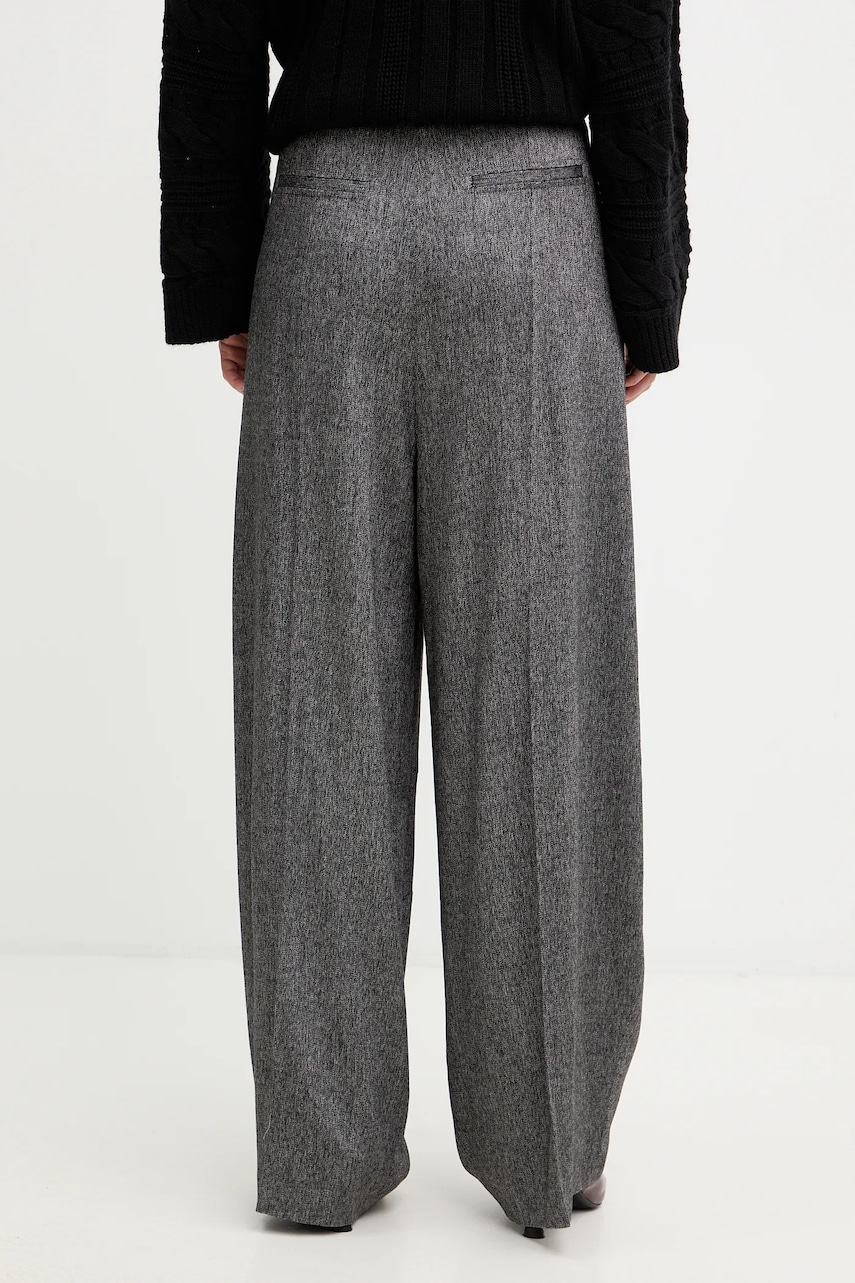 BOSS spodnie z domieszką wełny damskie kolor szary proste high waist 50548212