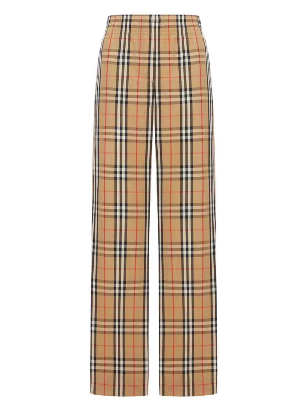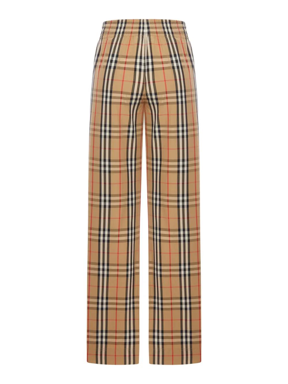 archive beige check pattern elasticated waist straight leg straight hem cotton