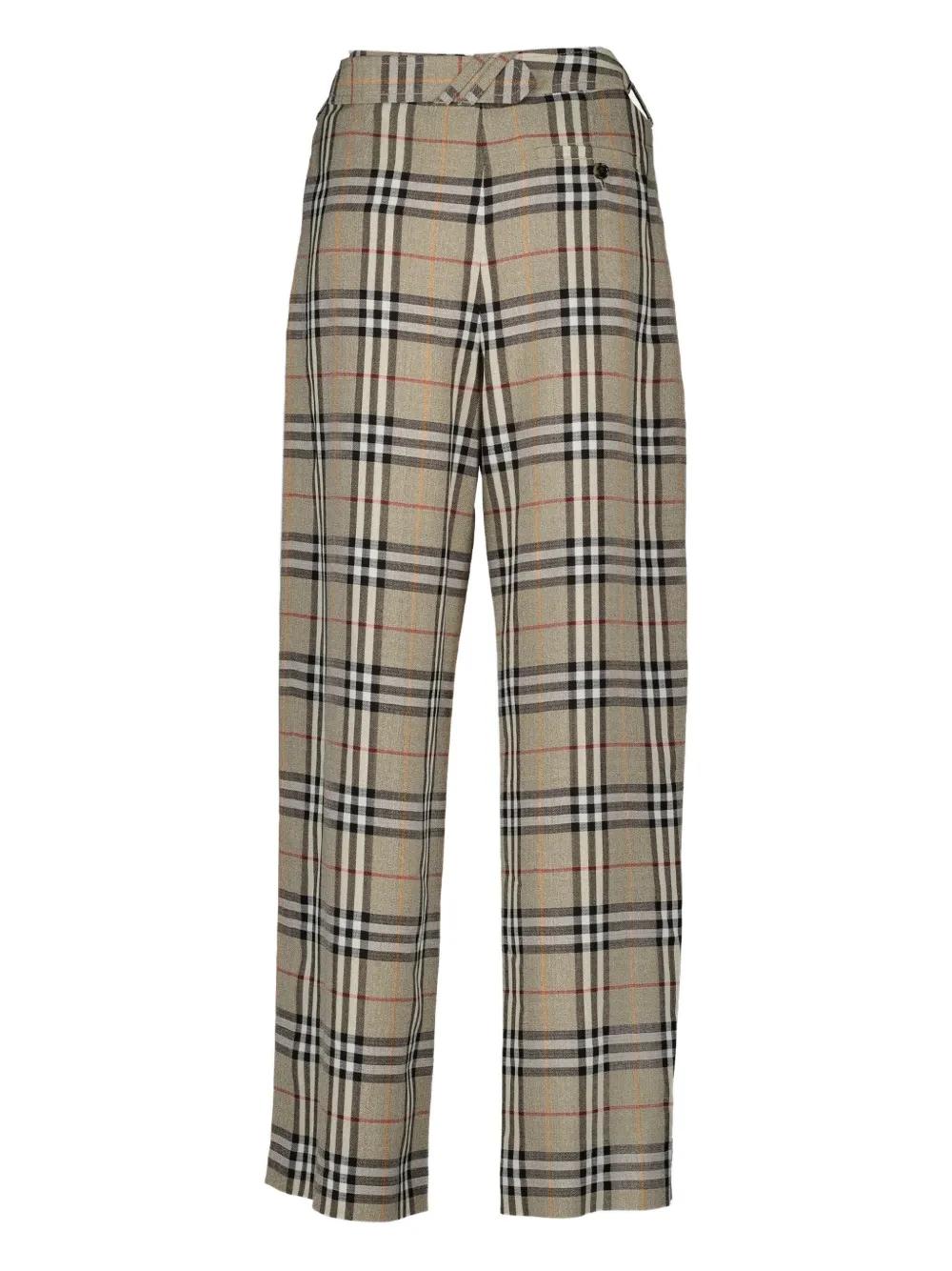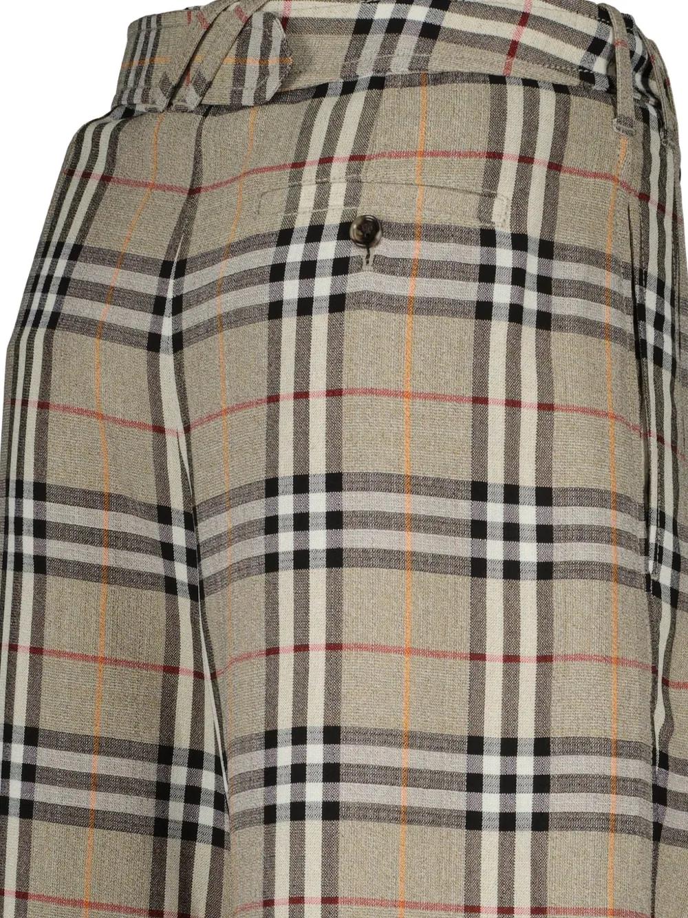 limestone-beige Burberry check pattern pleated front B buckle belt and belt loops button fastening welt pockets