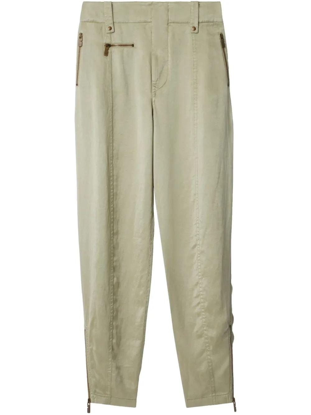 beige concealed front button, hook and zip fastening belt loops front zip-fastening pocket