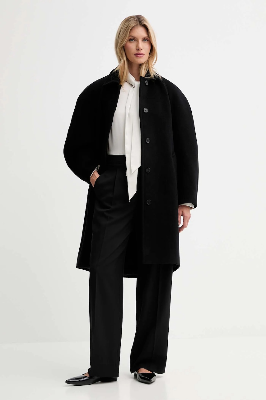 Calvin Klein spodnie damskie kolor czarny proste high waist LV040WL673