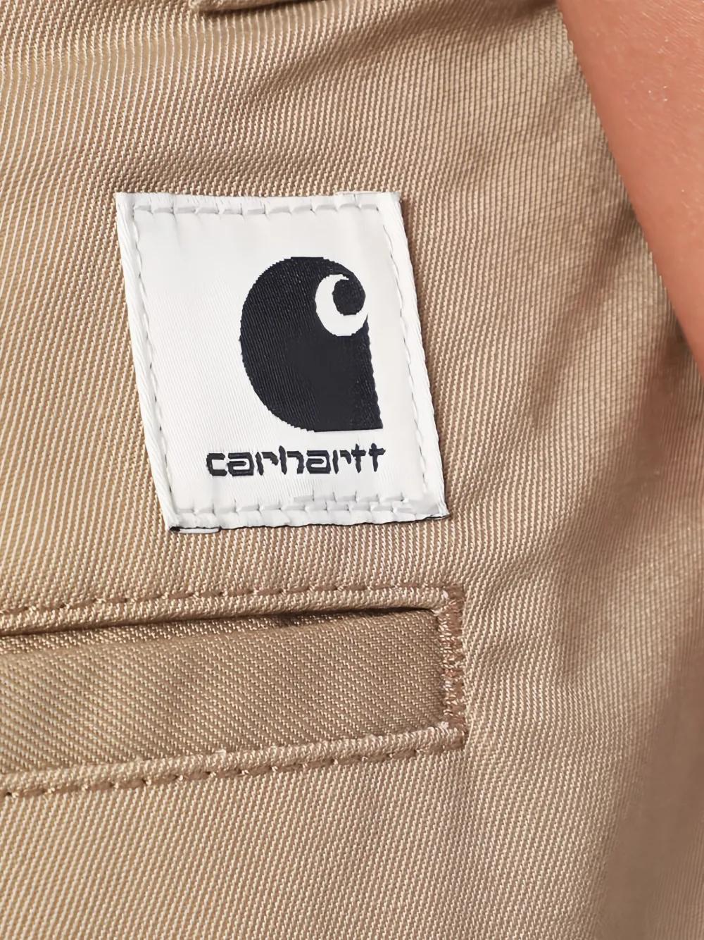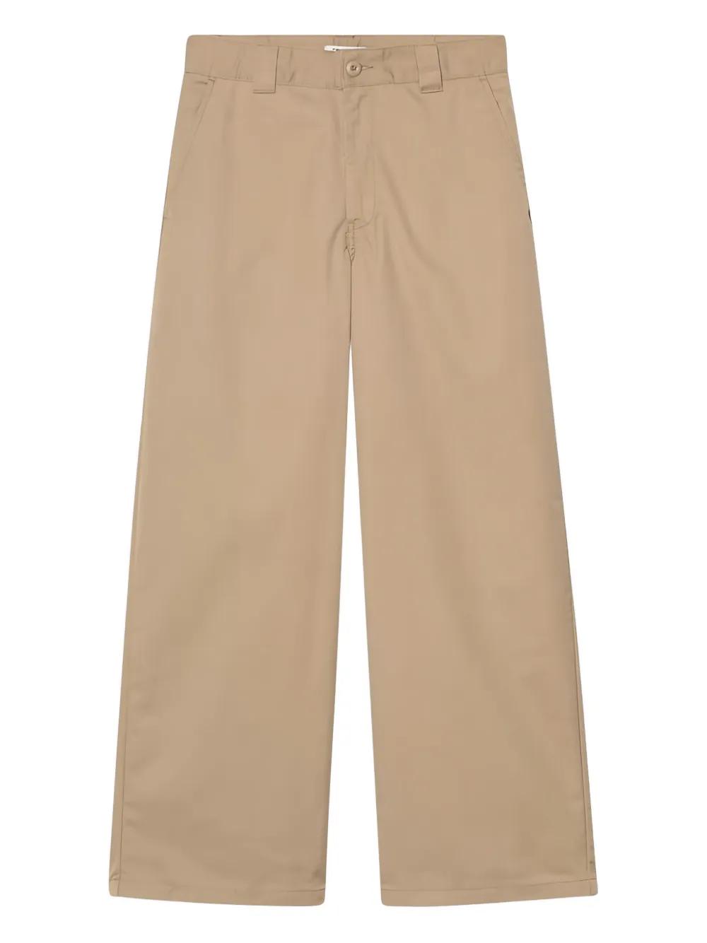 beige front button and zip fastening cotton blend high-waisted side slit pockets belt loops rear welt pockets
