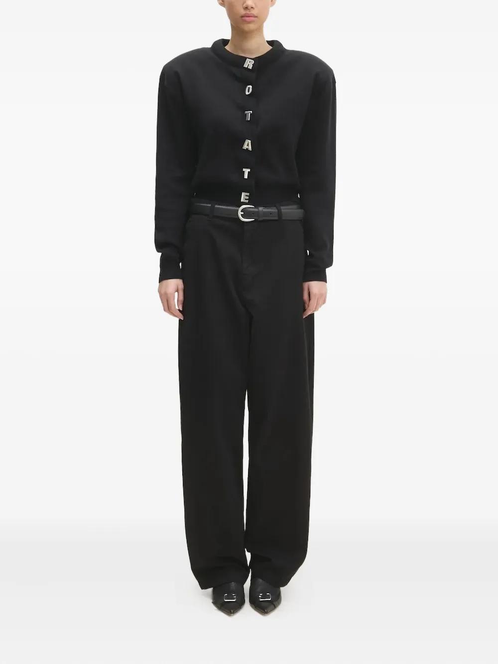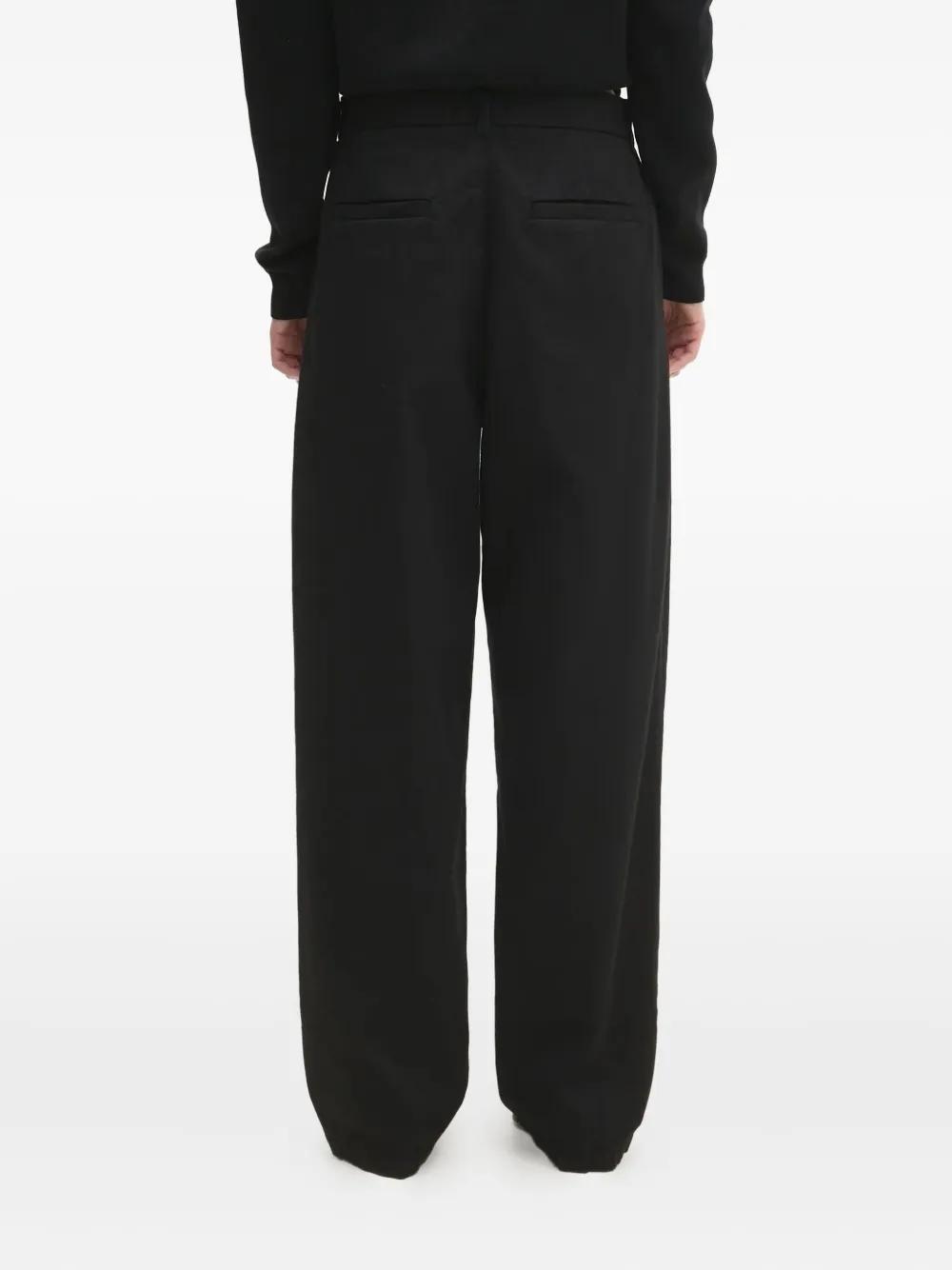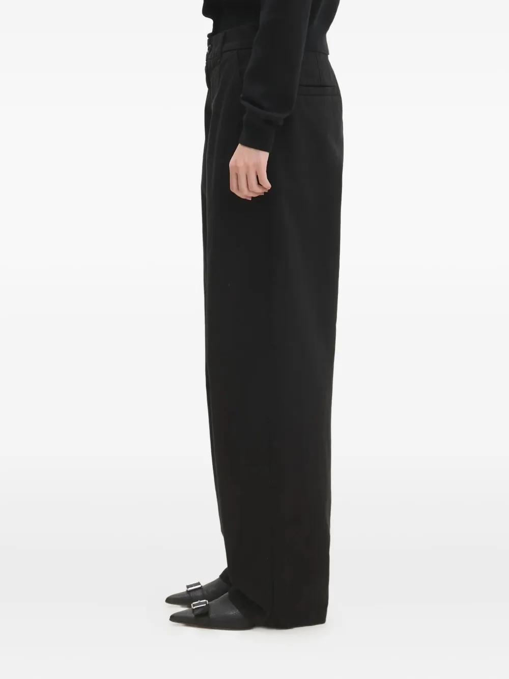 black pleated front wide leg high waist welt pockets