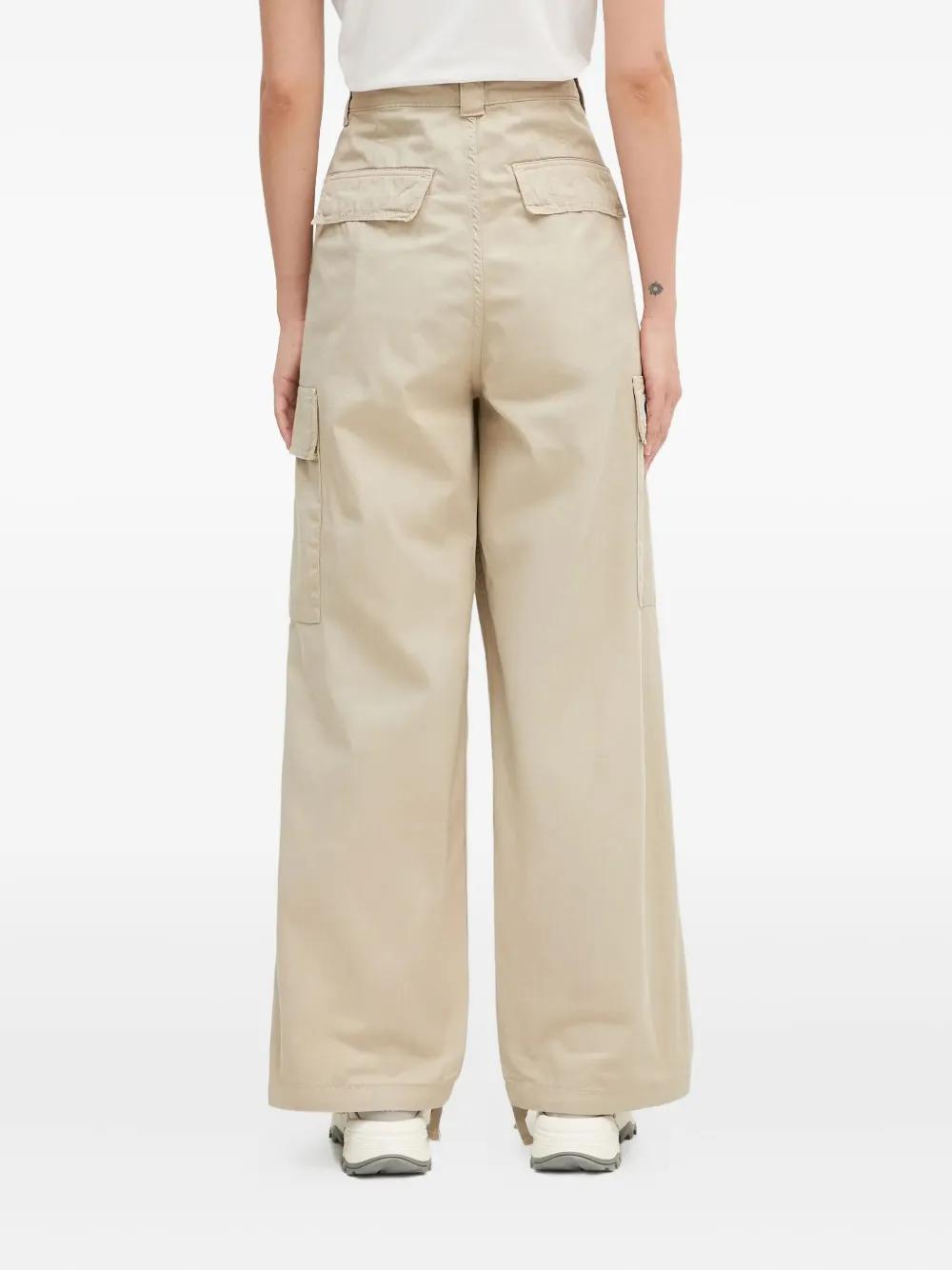 beige large cargo pockets high waist button fly drawstring hem belt loops mini logo patch