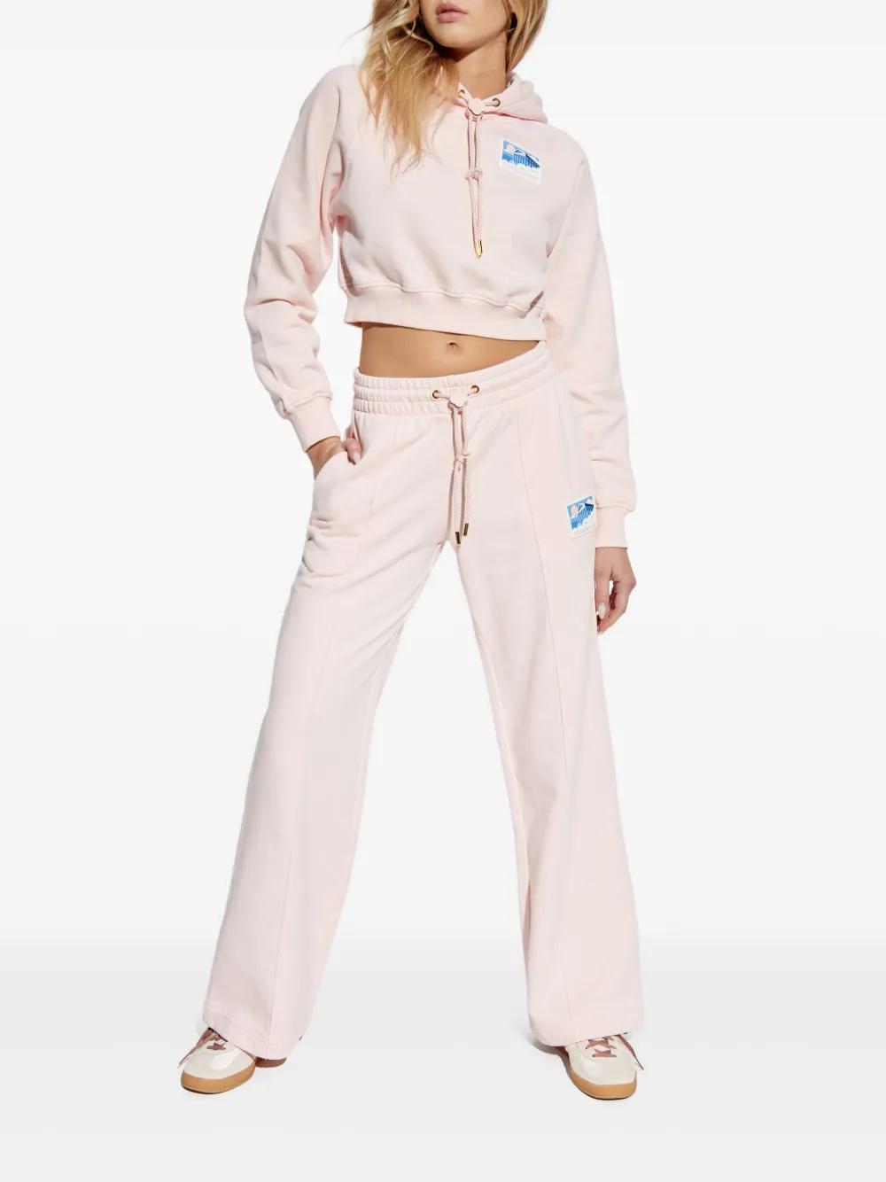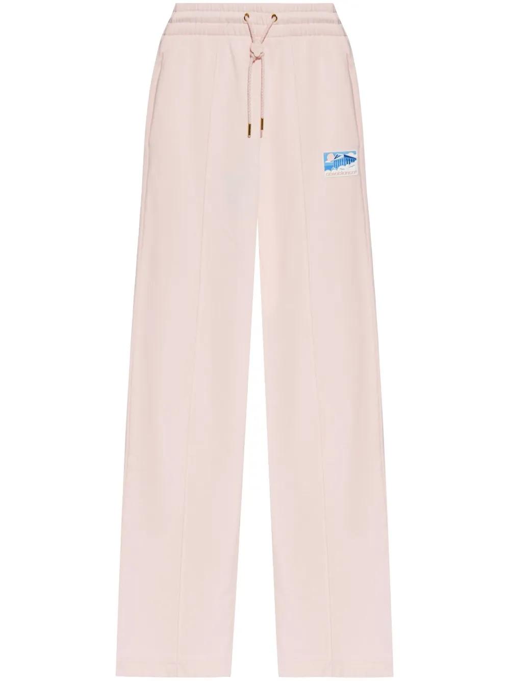 light pink elasticated drawstring waistband two side slit pockets rear patch pocket