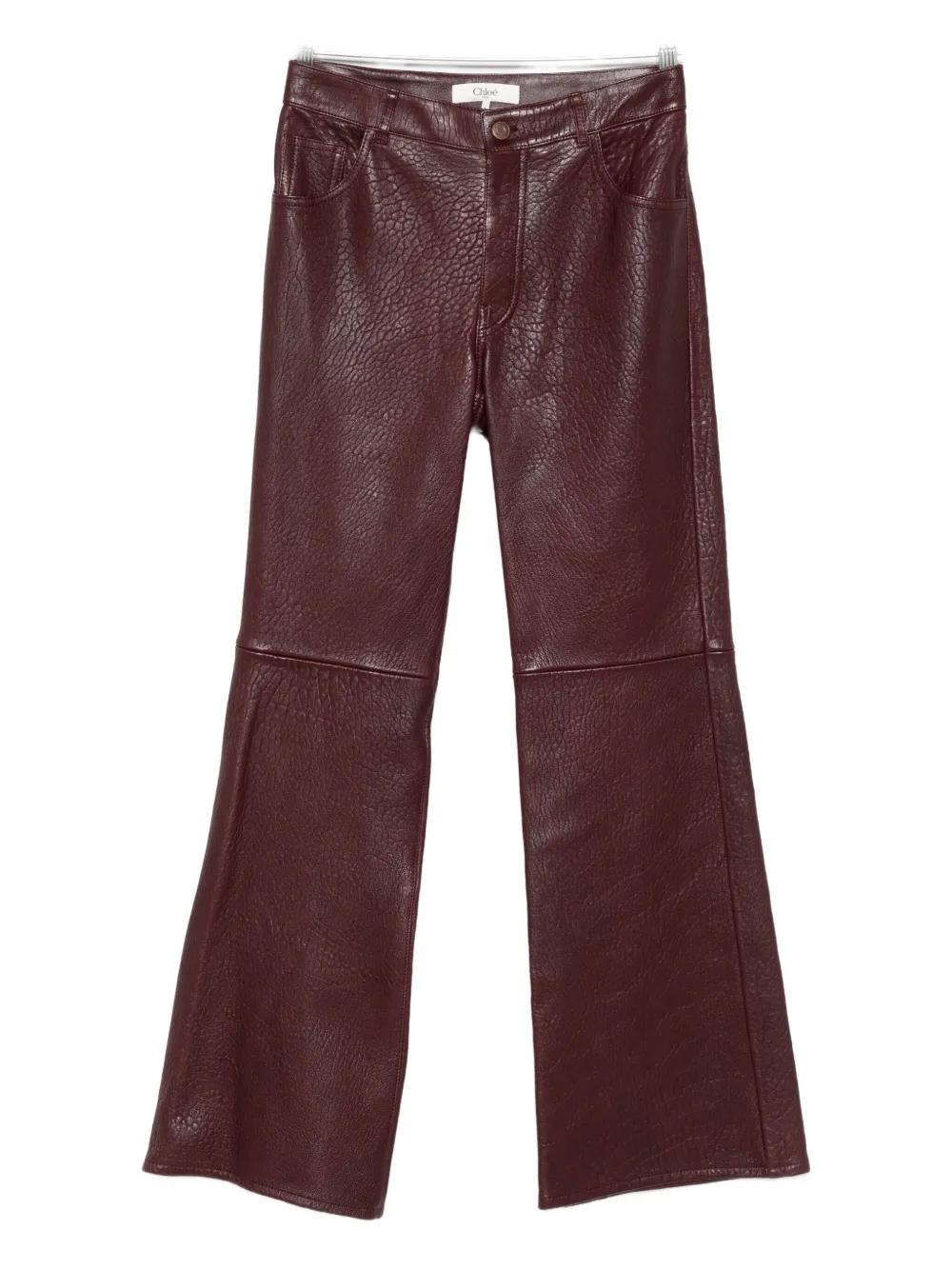 burgundy textured finish classic five pockets belt loops concealed fly and button fastening