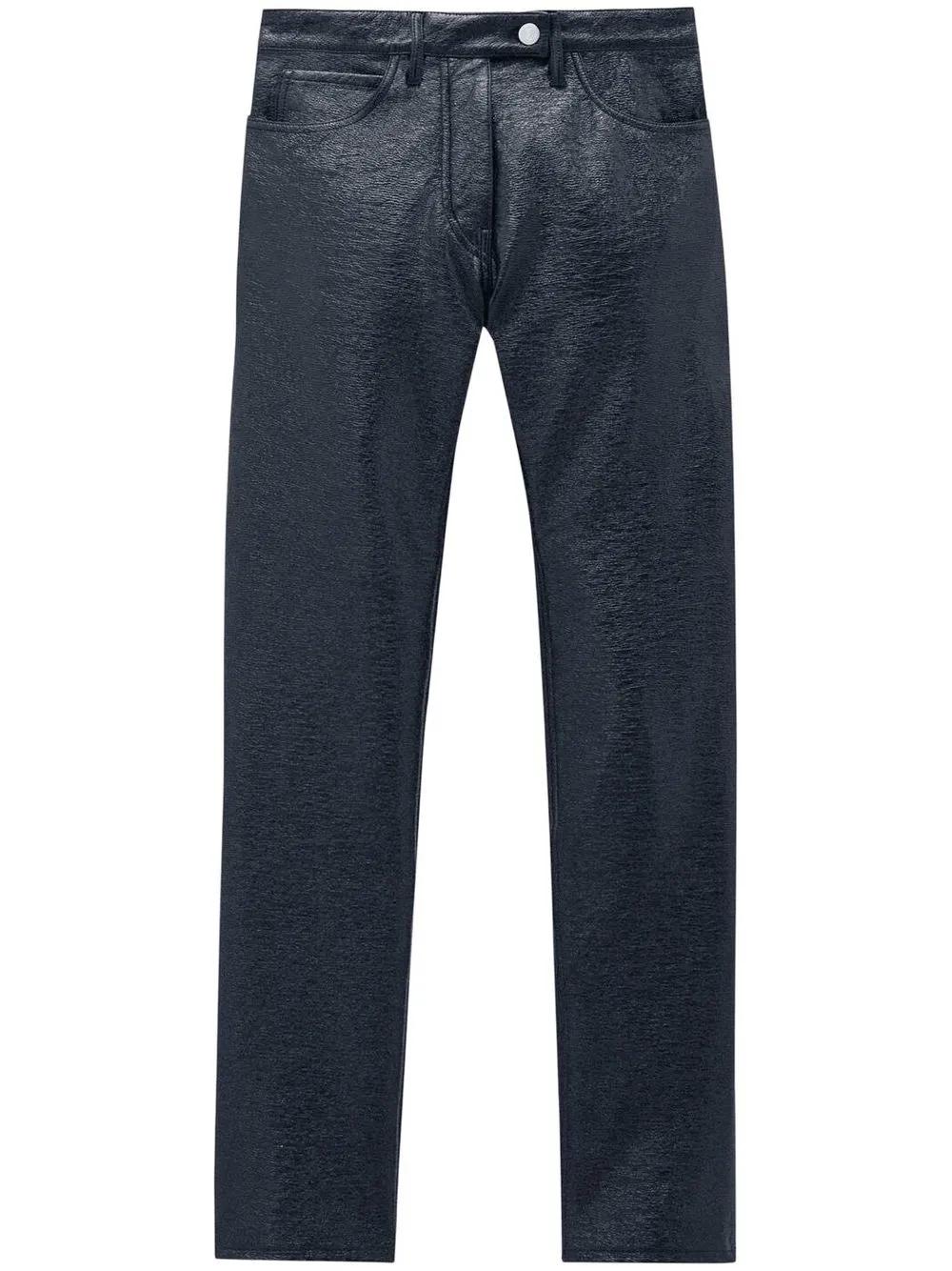 navy blue cotton blend belt loops straight leg front button and zip fastening classic five pockets