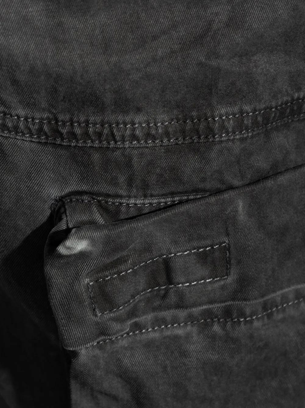 dark grey front button and zip fastening elasticated waistband two side zip-fastening pockets two rear patch pockets
