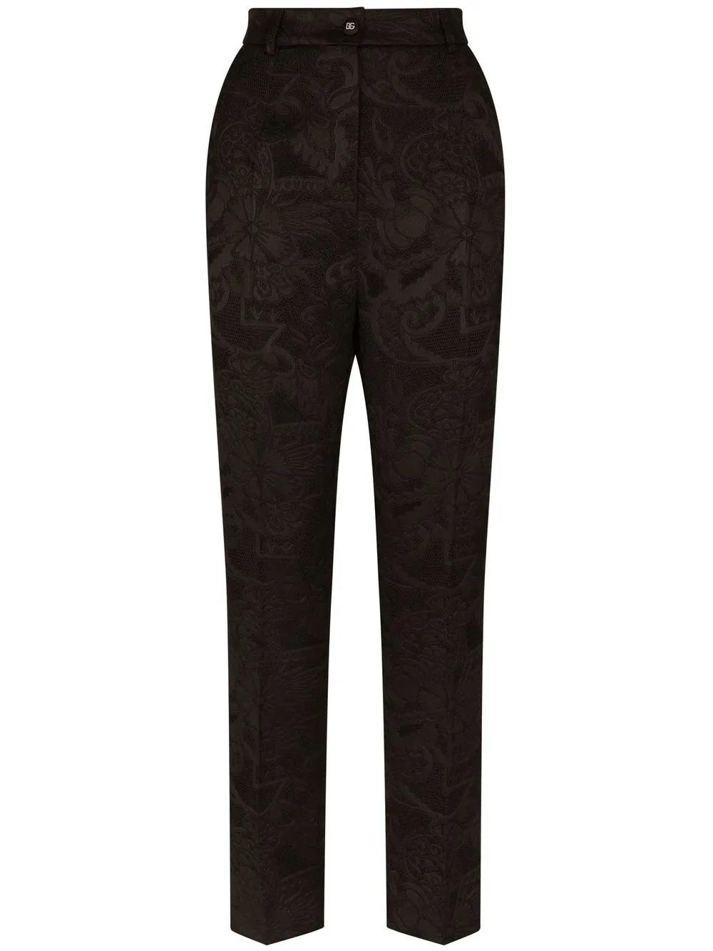 Dolce & Gabbana floral-jacquard tapered-leg trousers - Black