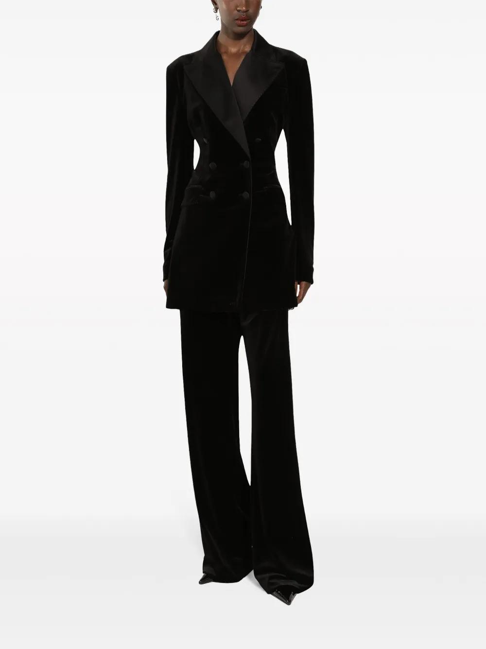black velvet finish elasticated waistband two diagonal pockets to the sides wide leg