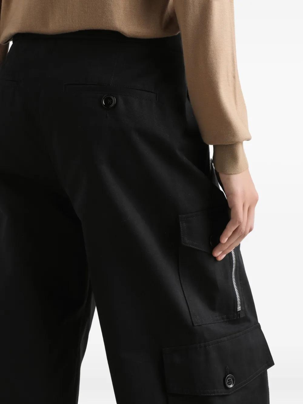 black side zip detailing cargo pockets button fastening drawstring hem straight leg