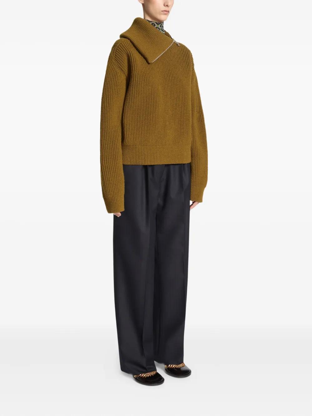 navy blue wool material pleated design straight leg centre-front zip fastening
