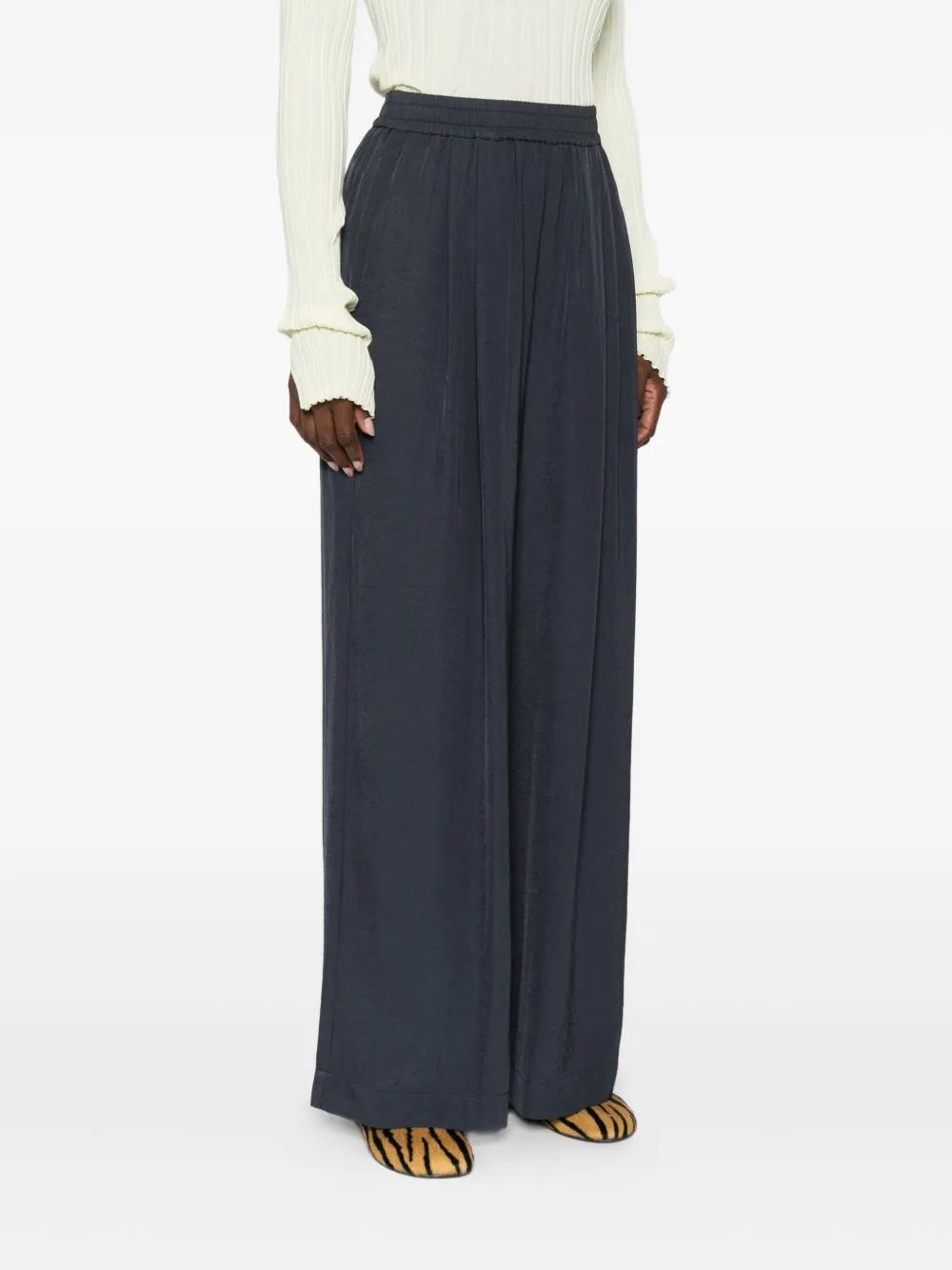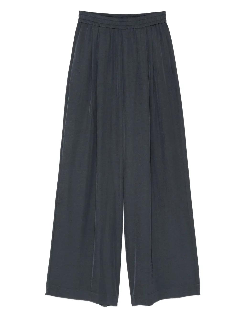 dark grey belted waist elasticated waistband pleat detailing wide leg