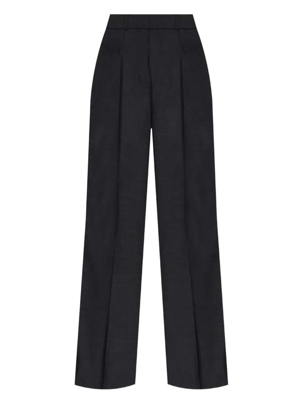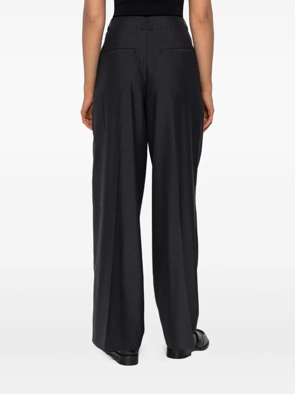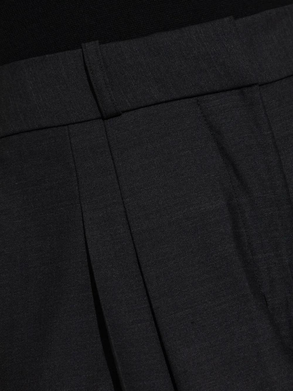 grey pleated front belt loops back welt pocket wide leg concealed front fastening
