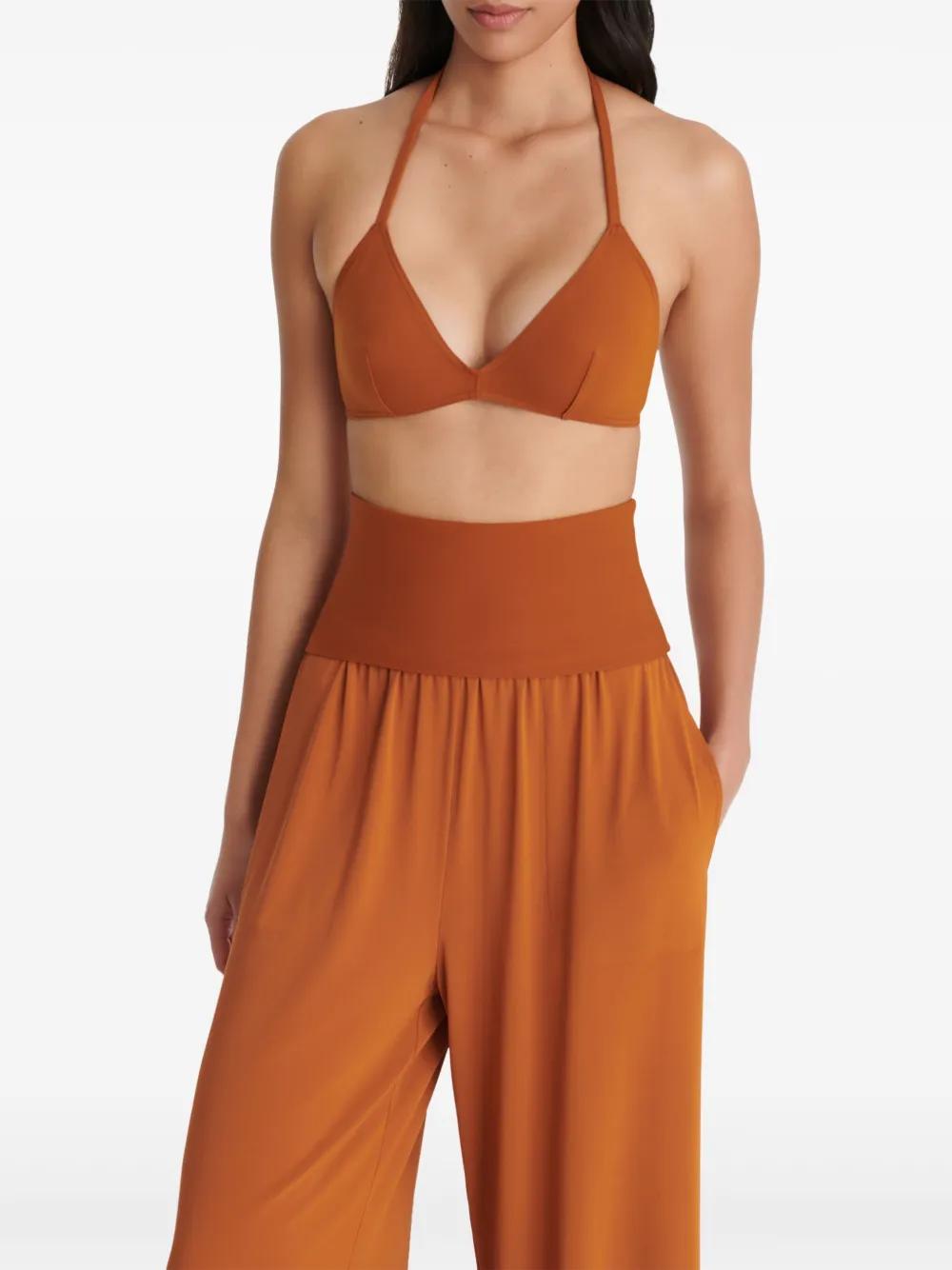brown stretch-design elasticated waistband high-waisted wide leg slip-on style