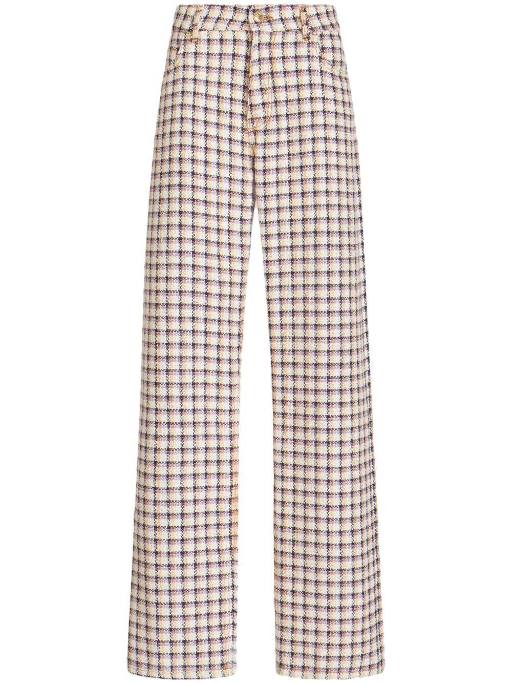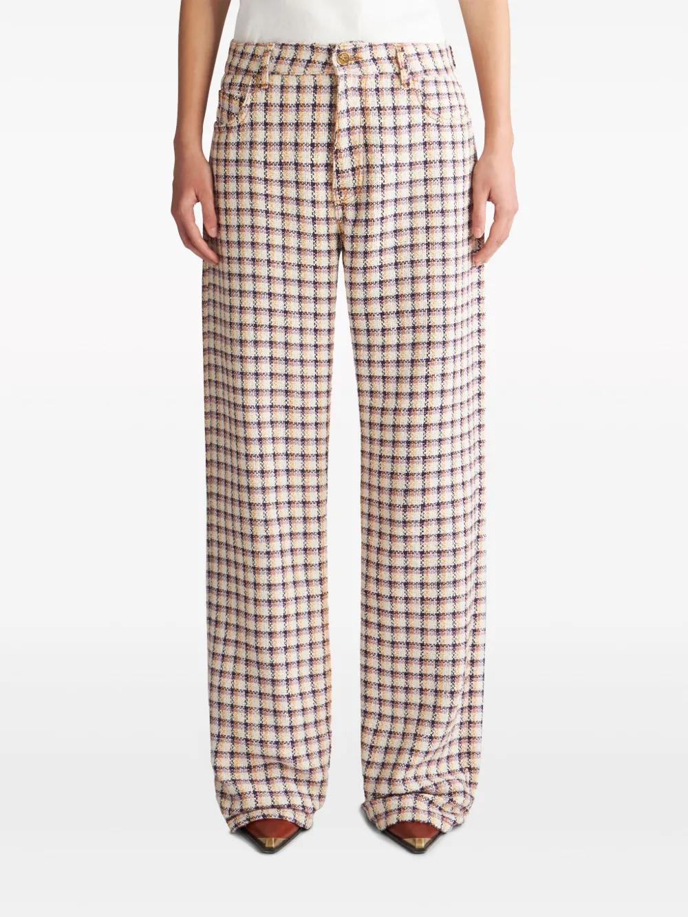 white/multicolour cotton blend jacquard mid-rise concealed fly and button fastening belt loops classic five pockets wide leg