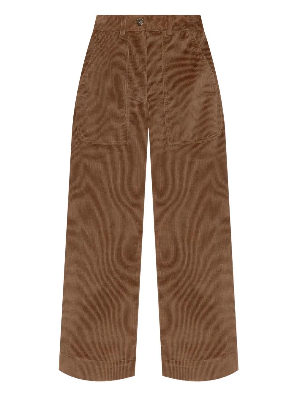brown corduroy texture button fastening flap pockets belt loops