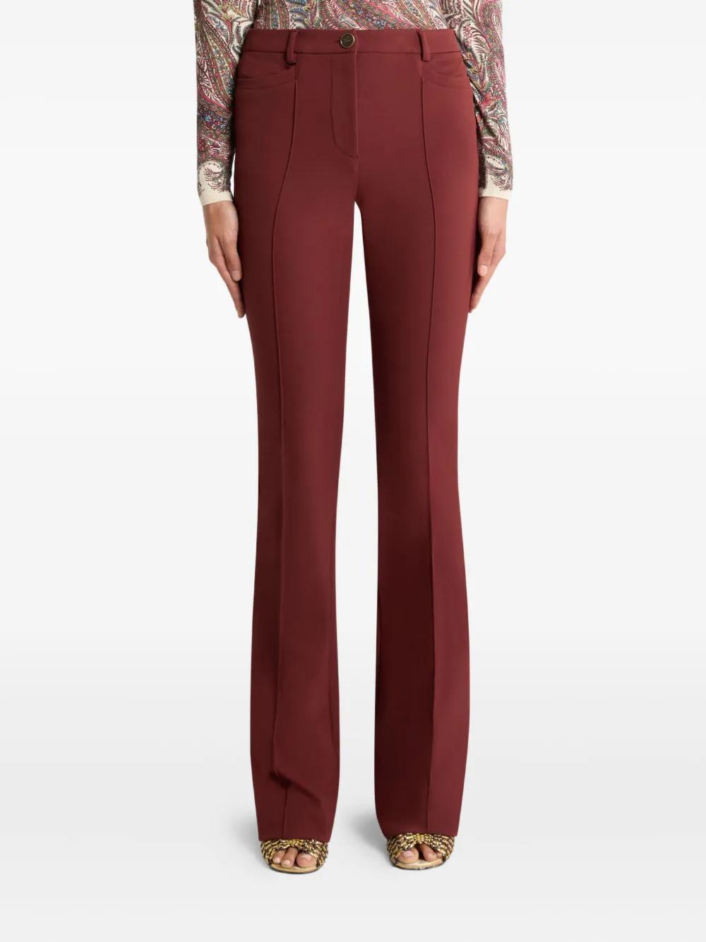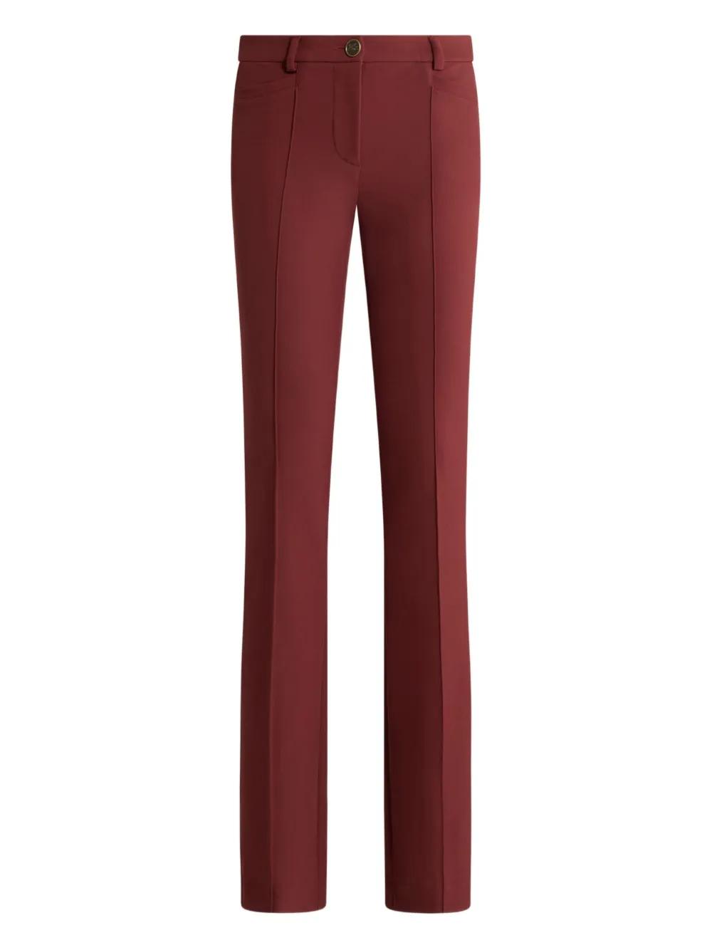 dark red front panel seams button fastening welt pockets straight leg high waist