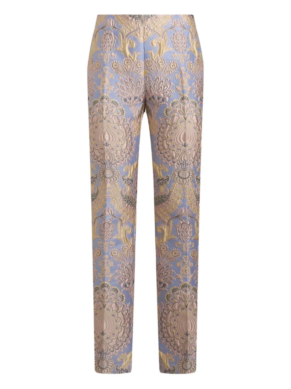 pastel blue concealed rear zip fastening pressed crease straight leg straight hem