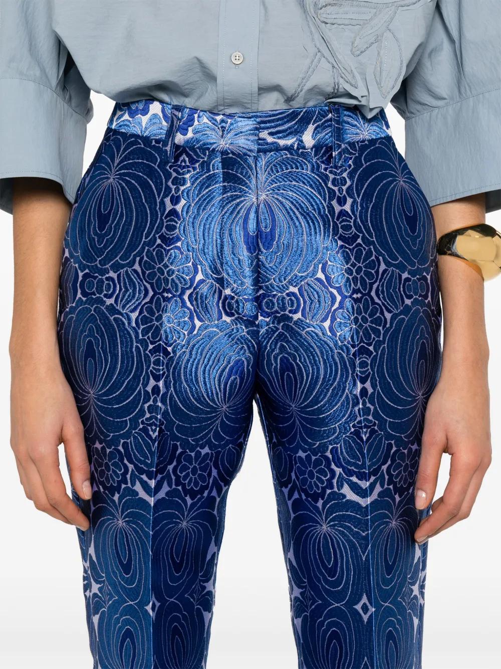 pacific blue concealed front button, hook and zip fastening two diagonal pockets to the sides two rear welt pockets belt loops