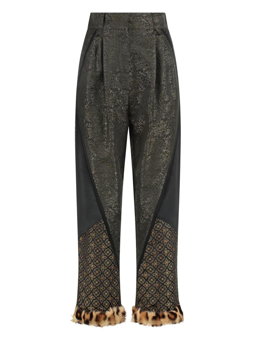 dark green brocade texture geometric pattern panelled design leopard-print cuff