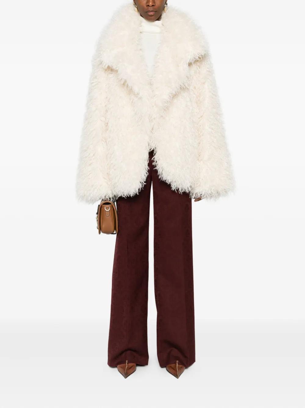 cream white drawstring waist contrasting inserts embroidered detailing side pockets relaxed fit